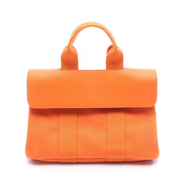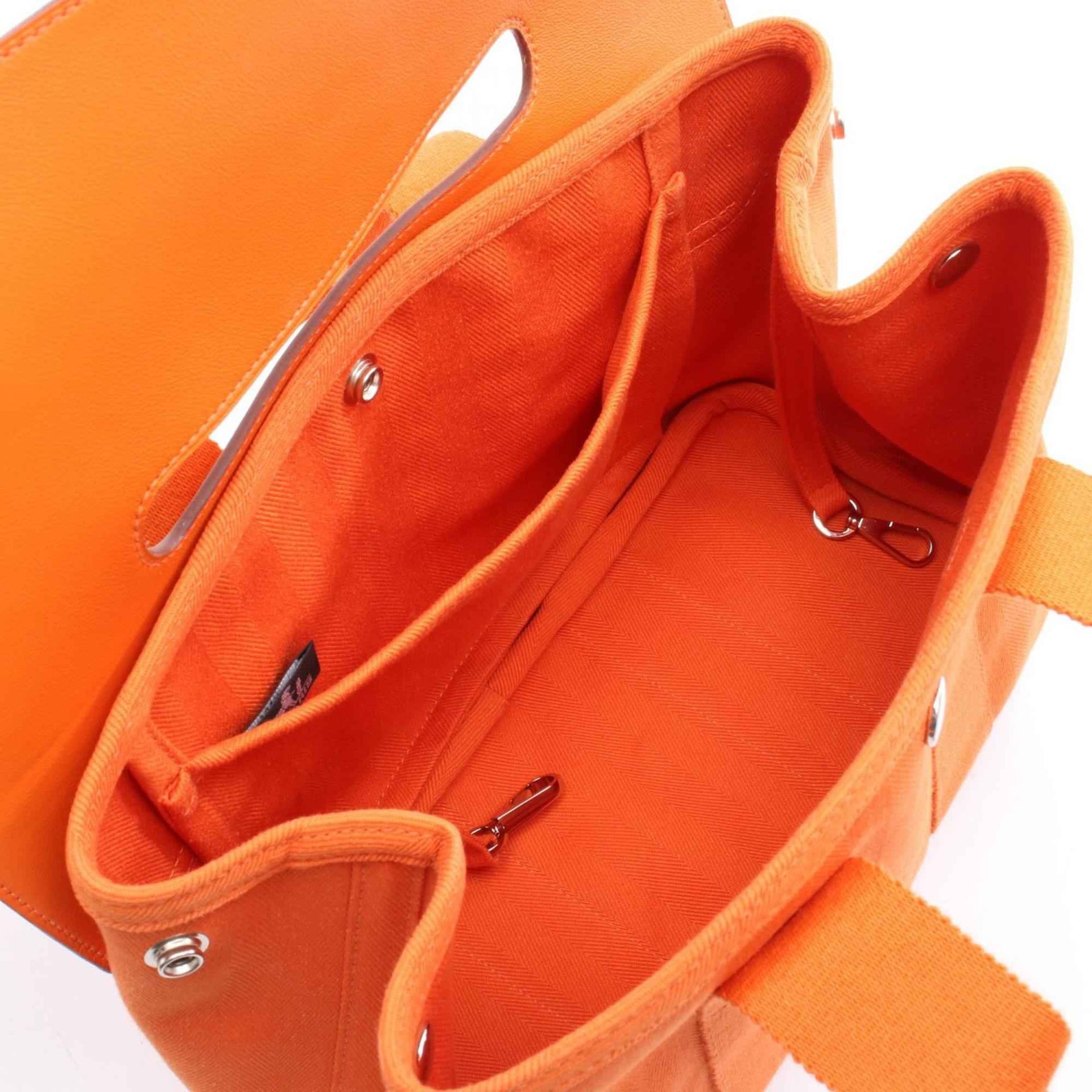Hermes Hermès Valparaiso PM handbag in leather and canvas with Toile Chevron detailing, orange.