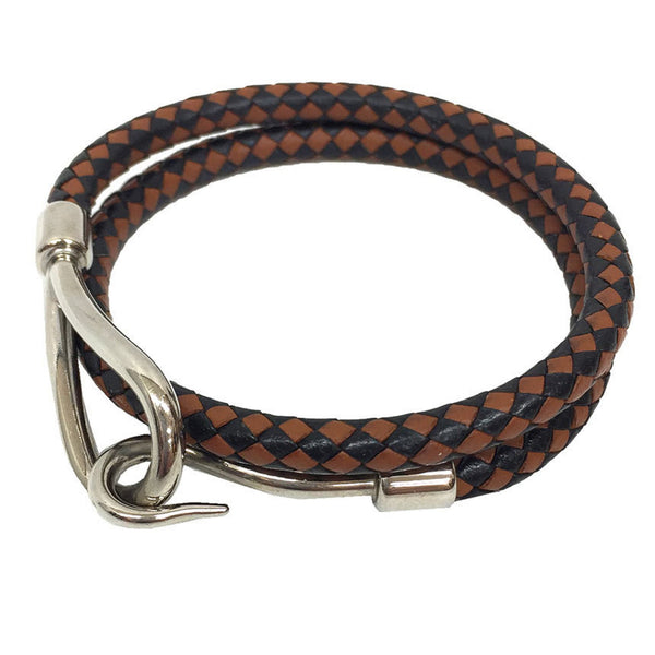 Hermes Jumbo Choker Double Bracelet Leather Intrecciato Two-Tone Men\'s Women\'s Black x Brown