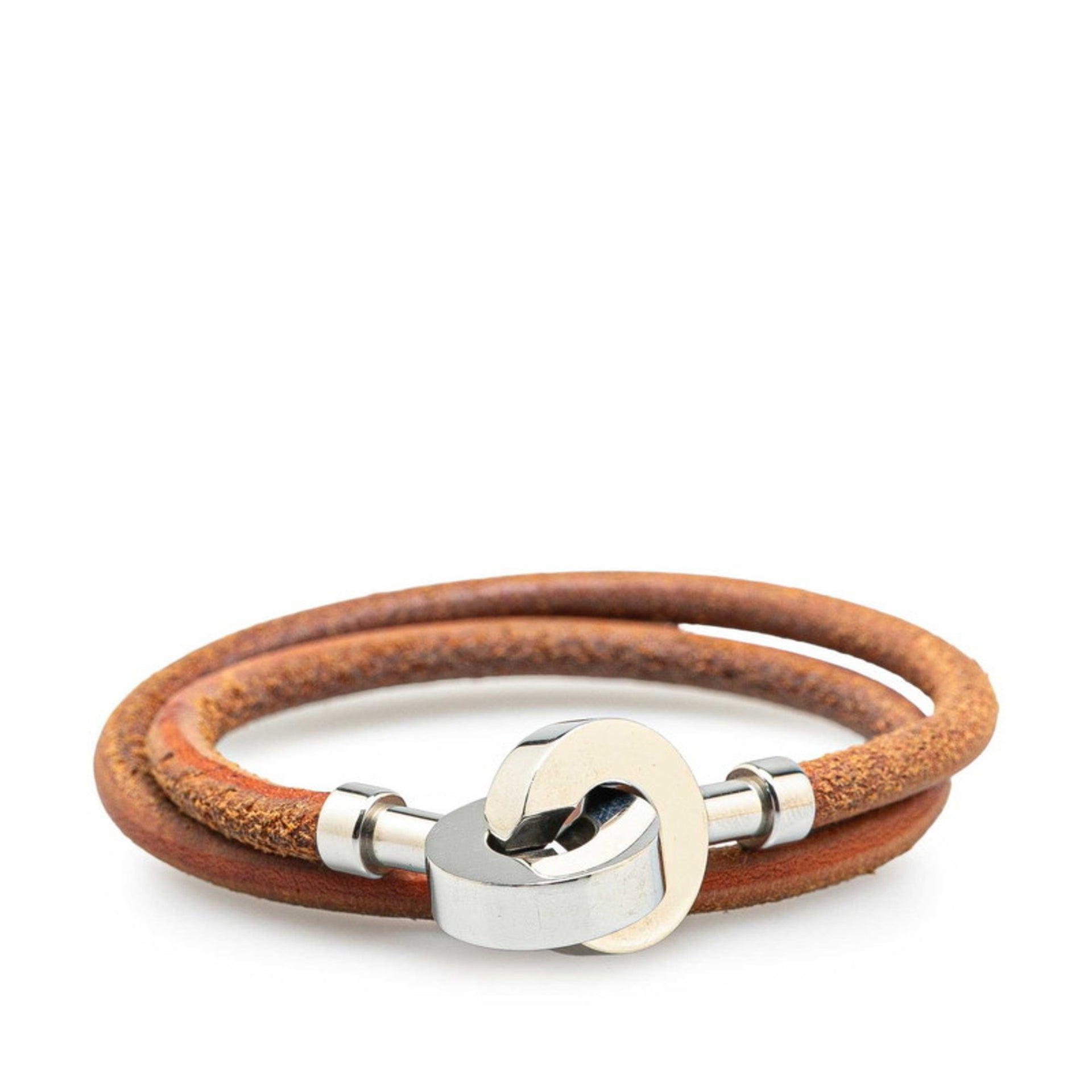 Hermes Lancelot Bracelet Choker in Brown and Silver Leather Metal for Women