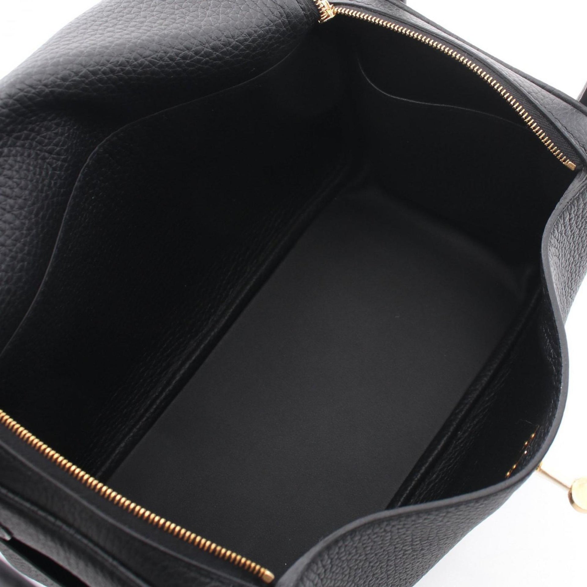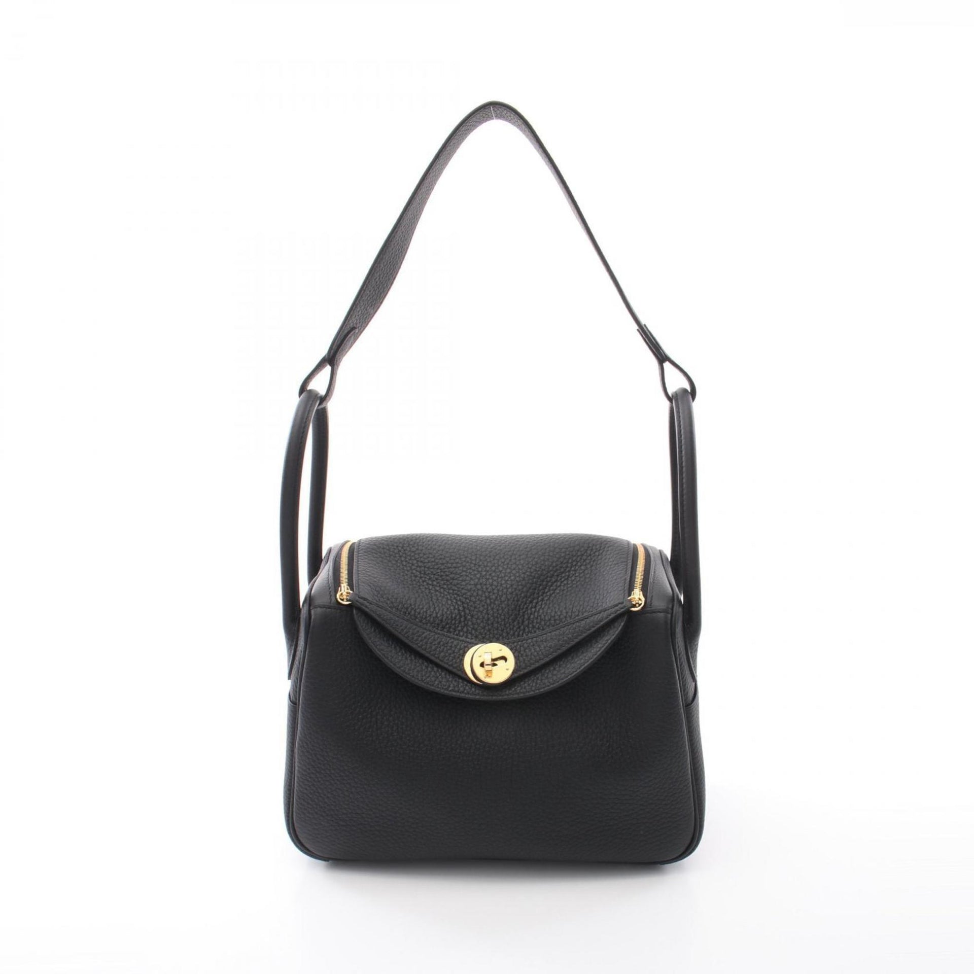 Hermes Lindy 26 Shoulder Bag Taurillon Clemence Women\'s Black G Hardware K Engraved