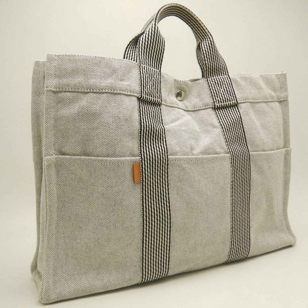 HERMES New Foule Tote MM Bag, Cotton, Gray, Men\'s, 253298