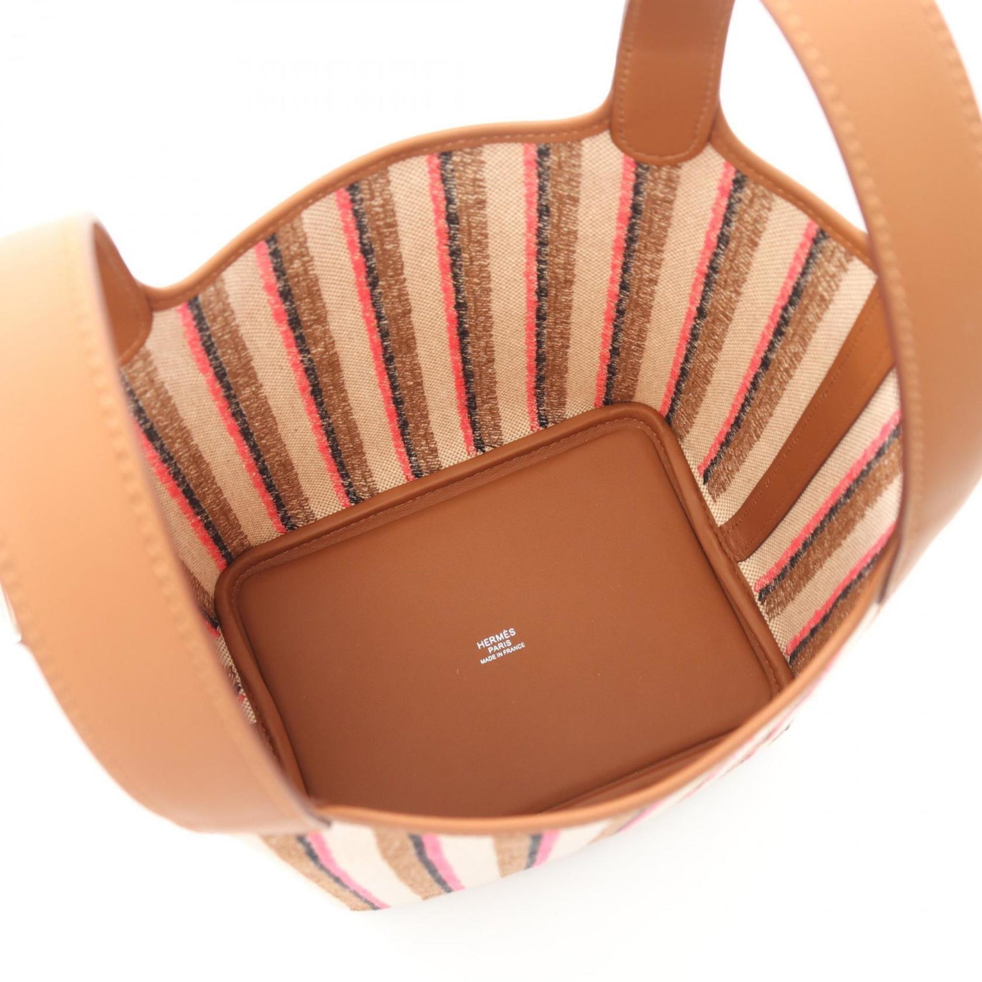 HERMES Picotin Lock PM Handbag Toile H Swift for Women Ivory Brown Multicolor