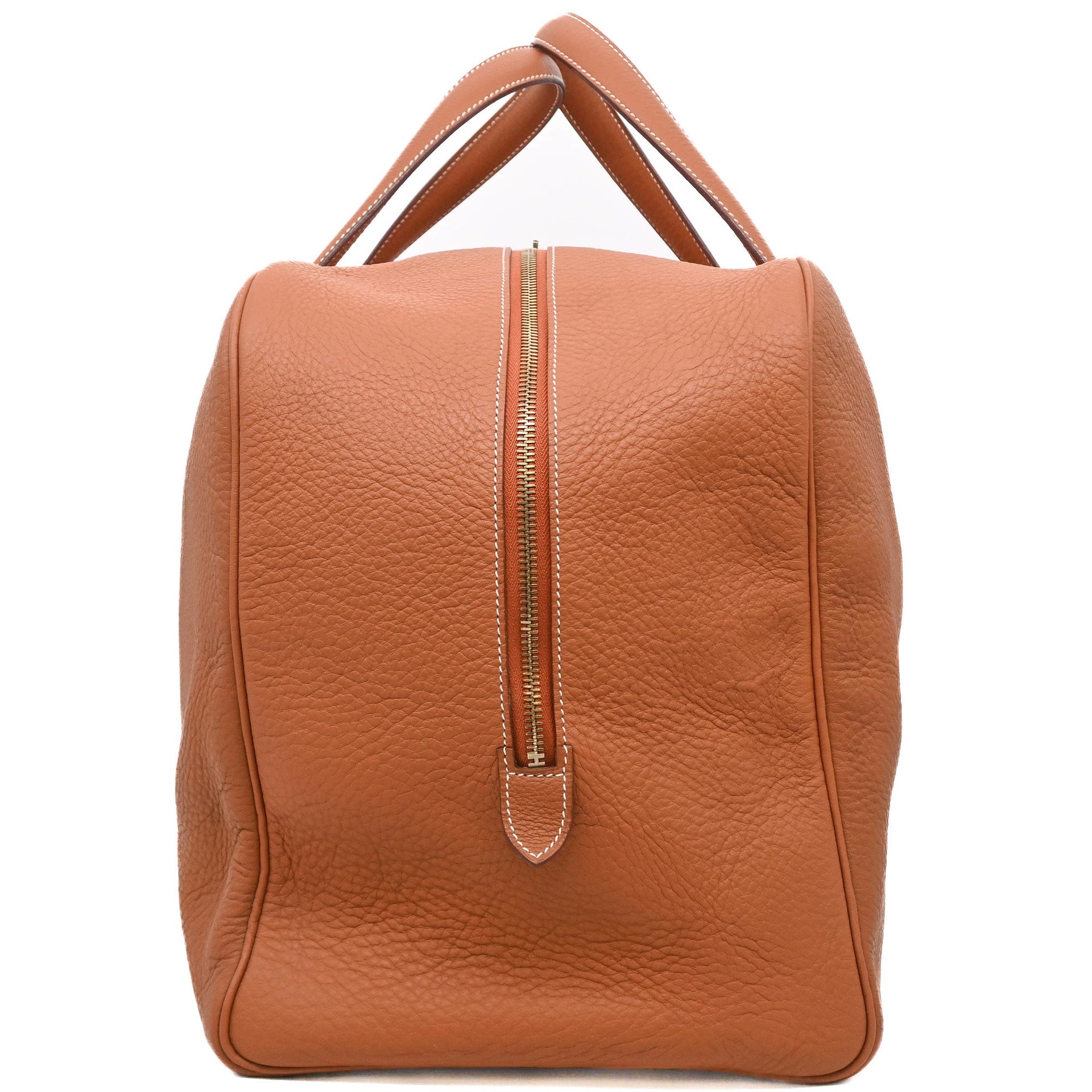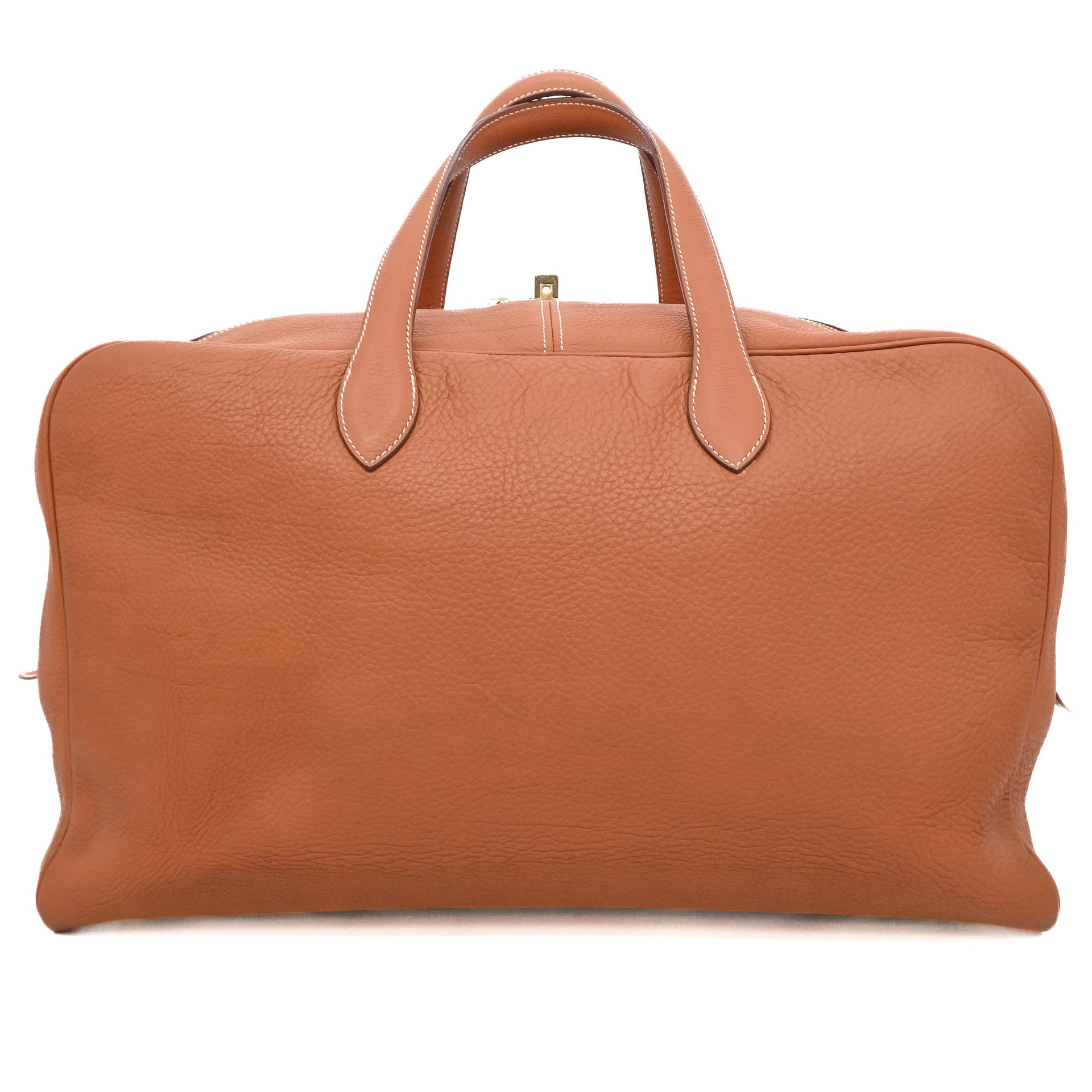 HERMES Victoria 50 Boston/Travel Bag for Men and Women, Taurillon Clemence Leather, Gold Brown, #□E