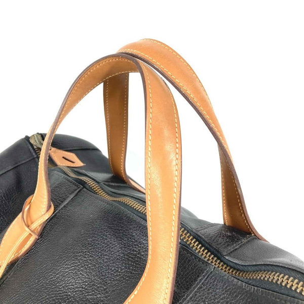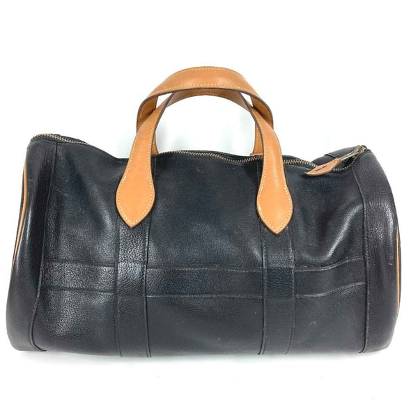 HERMES Vintage Art Deco Travel Bag, Handbag, Two-Tone Cylindrical Boston Ardennes, Black, for Men and Women