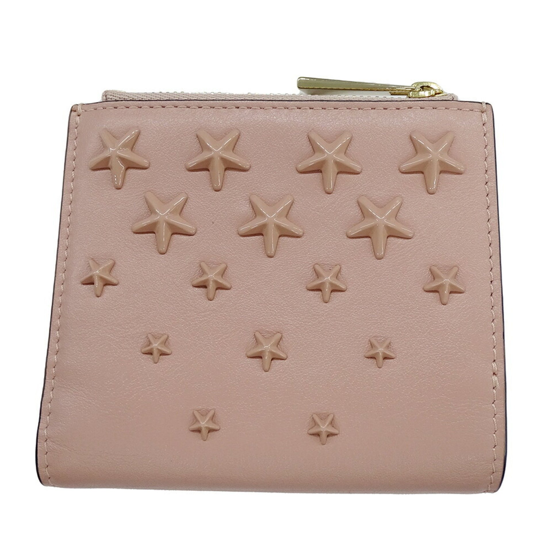 Jimmy Choo Women\'s Bifold Wallet in Calfskin Leather with Star Studs, Pink, Compact Design