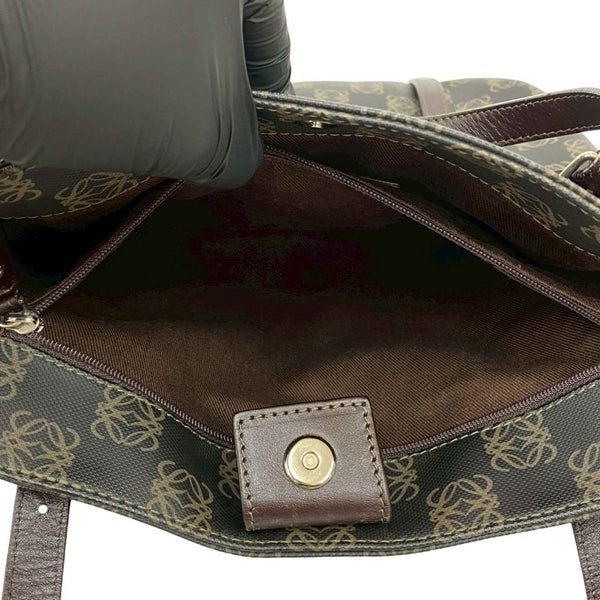 LOEWE Anagram All-Over Logo Engraved Leather Handbag/Mini Tote Bag, Brown/Charcoal Gray, 27567