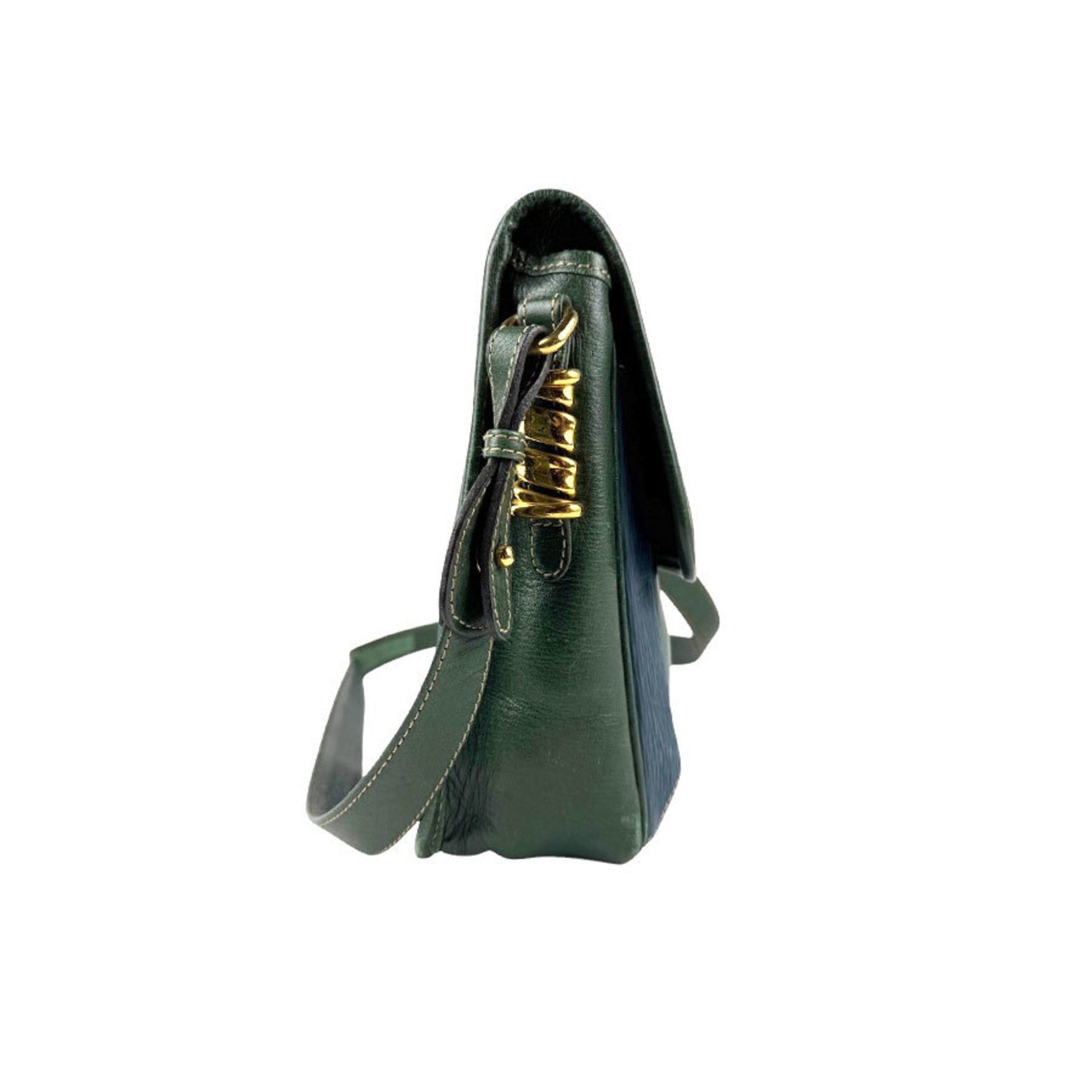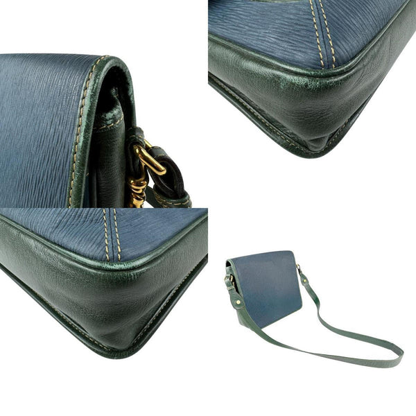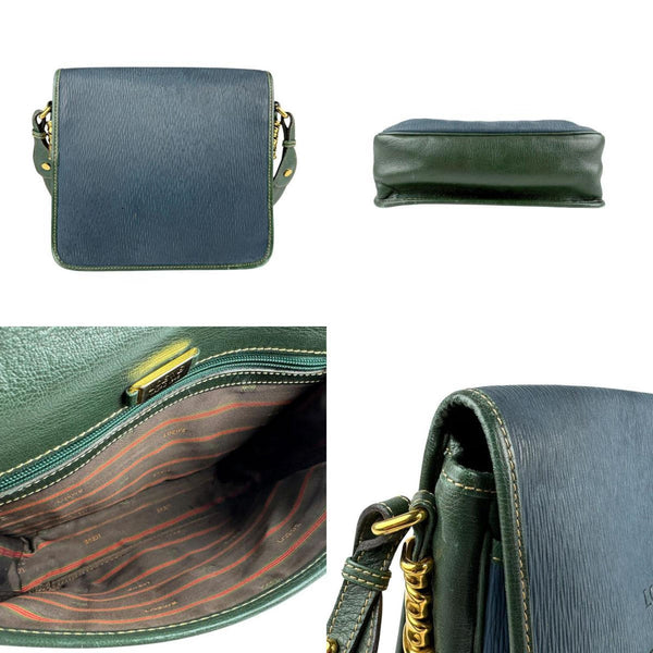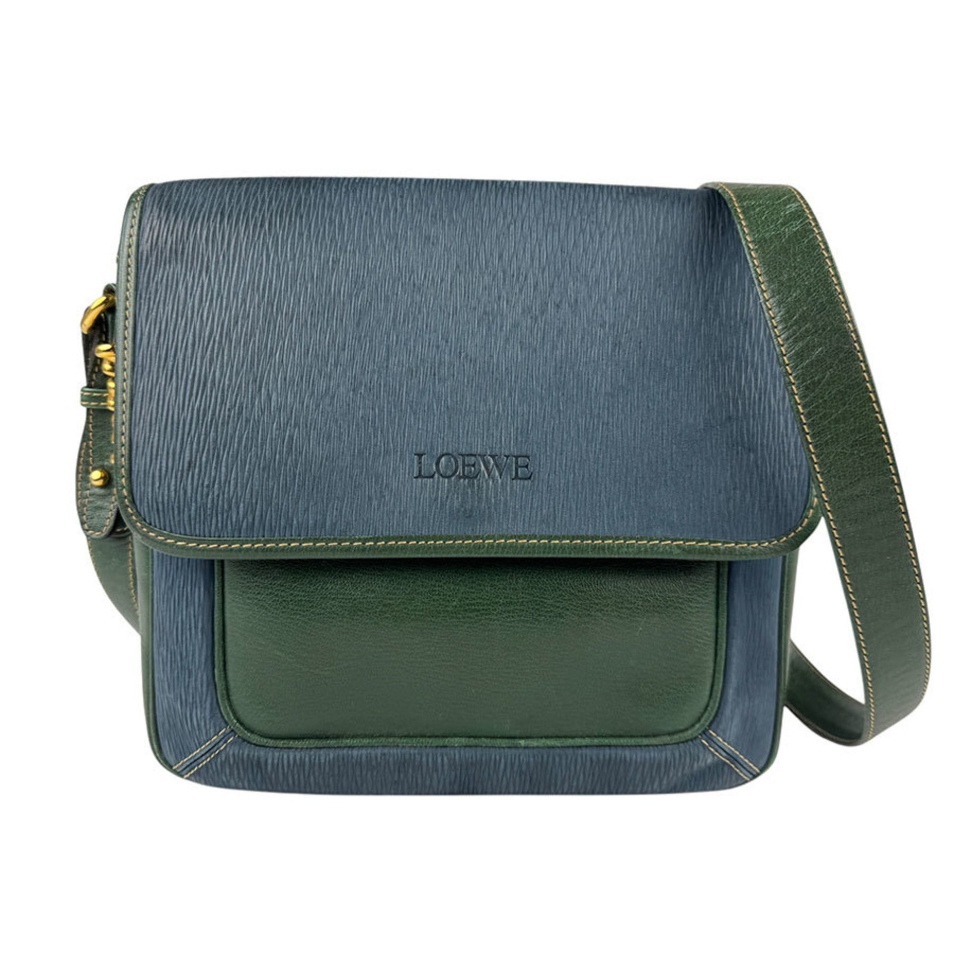 LOEWE Shoulder Bag Leather Navy Blue Dark Green Gold Women\'s z4503