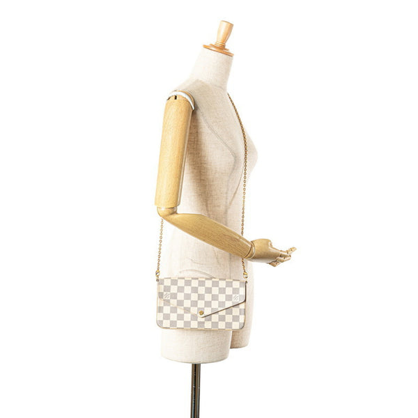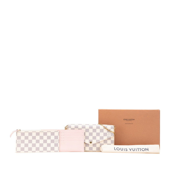 Louis Vuitton Damier Azur Pochette Felicie Chain Shoulder Bag N40491 Ivory Leather Women\'s LOUIS VUITTON