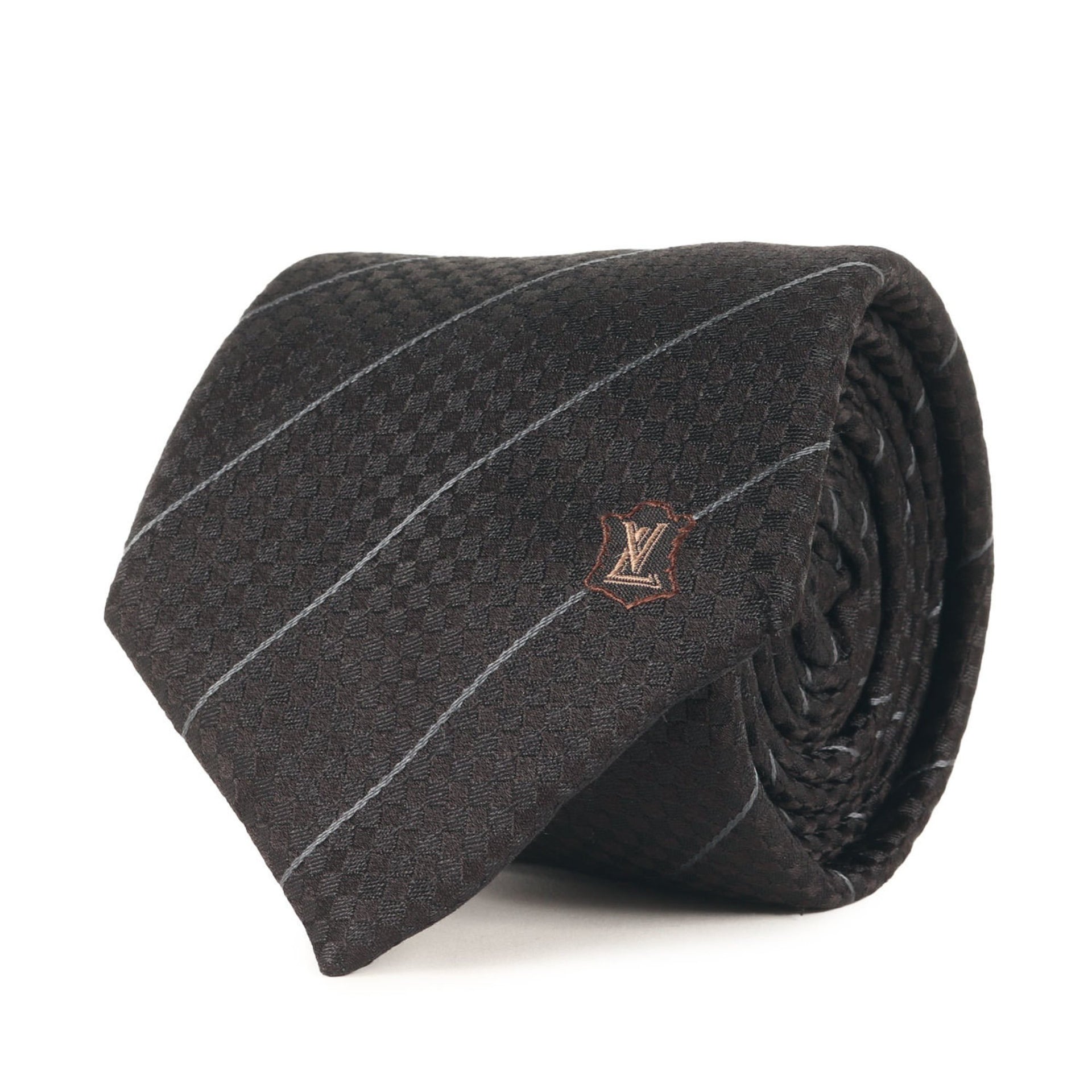 LOUIS VUITTON Louis Vuitton Micro Damier Regimental Silk Cravate Tie in Black, Men\'s K4616