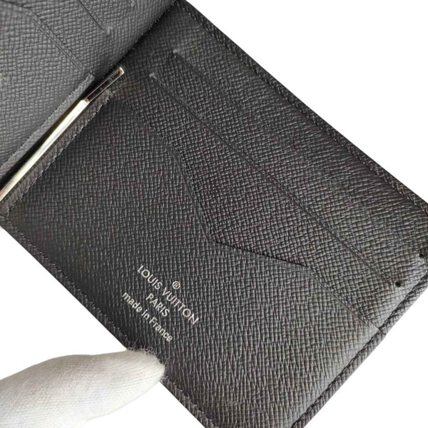 LOUIS VUITTON Louis Vuitton Portefeuille Pans Taiga Leather Money Clip M62978 Wallet, Ardoise, Black, Men\'s and Women\'s
