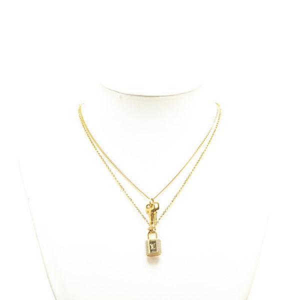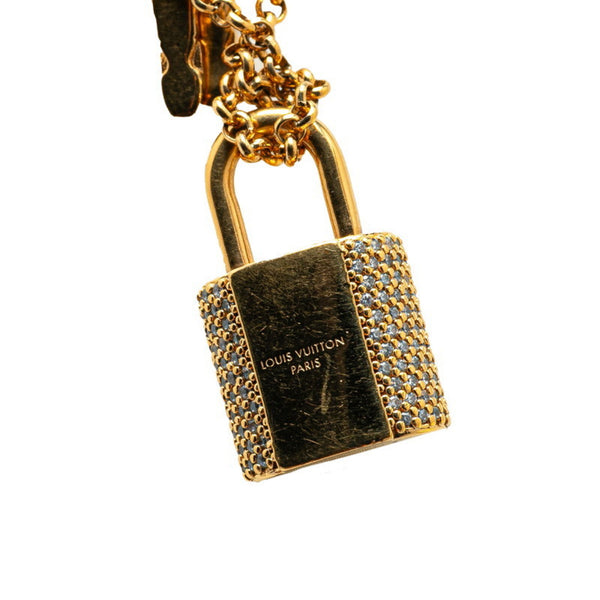 Louis Vuitton LV Padlock Pendant Necklace M01593 Gold Plated Rhinestone Women\'s LOUIS VUITTON