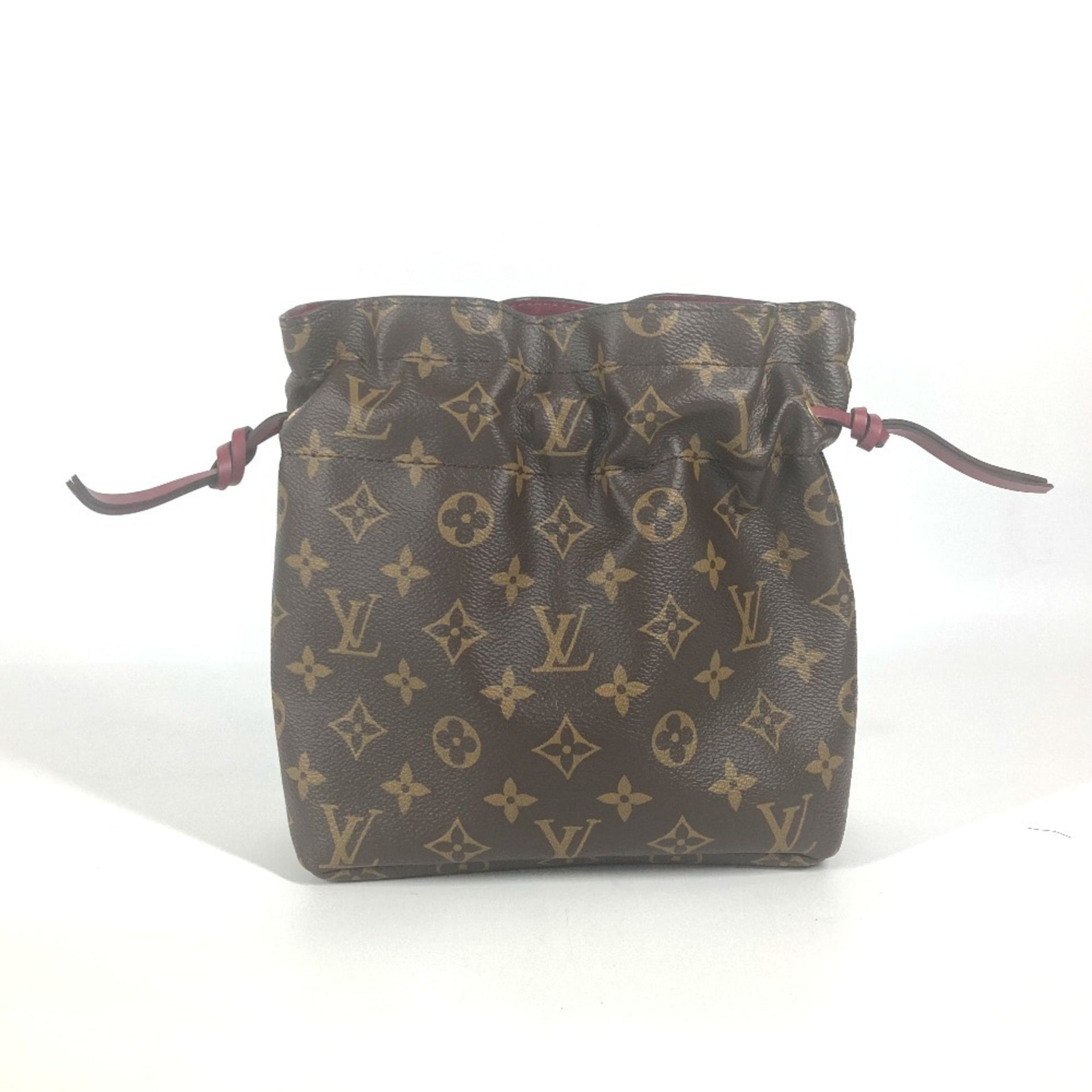 LOUIS VUITTON M43445 Monogram Drawstring Pouch Posh Noe Canvas Women\'s Fuchsia Brown