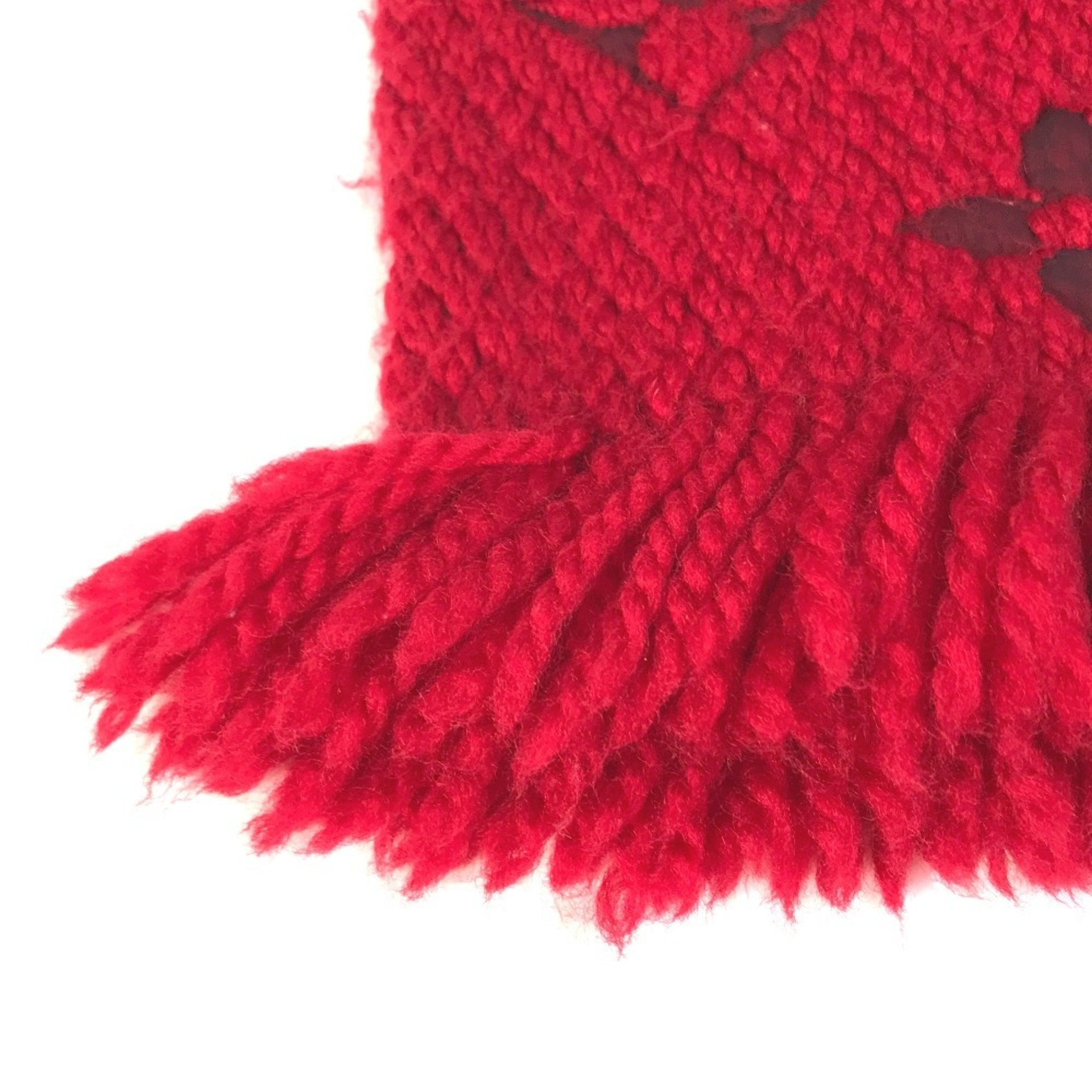 LOUIS VUITTON M72432 Echarpe Logo Mania Fringe Scarf, Wool/Silk, Women\'s, Red