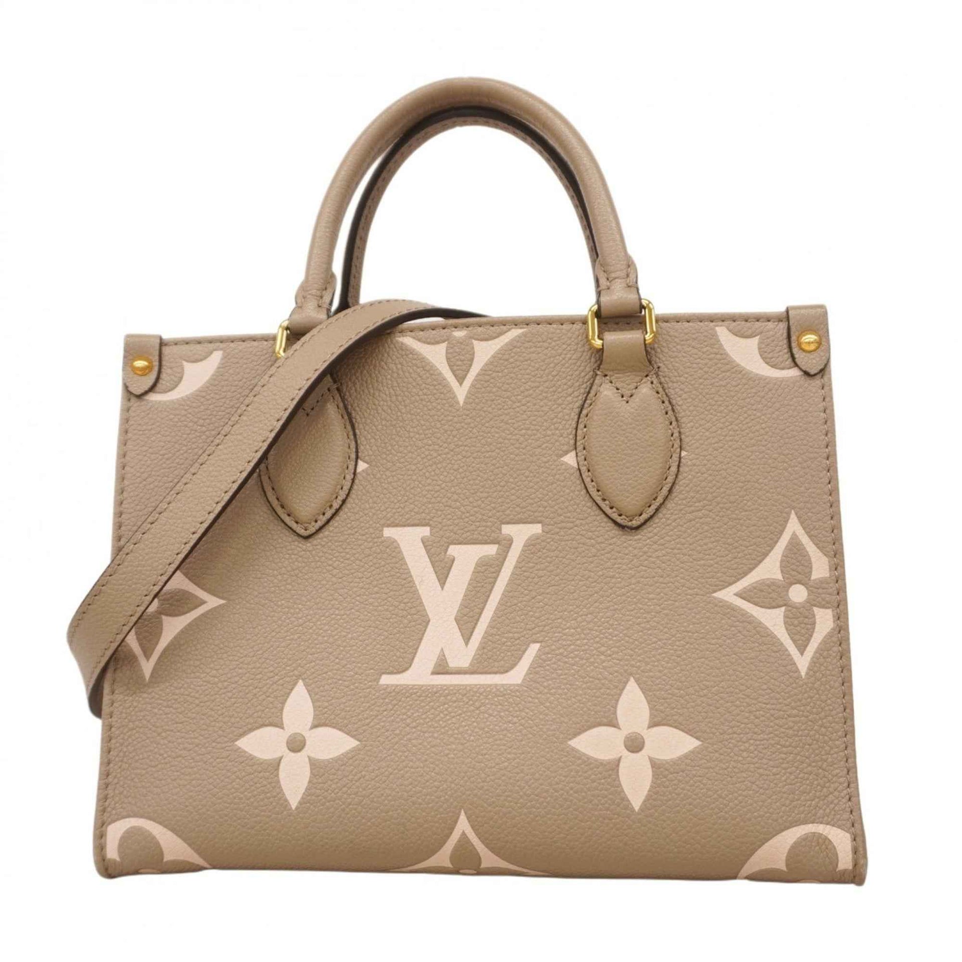 Louis Vuitton Monogram Empreinte Two-Tone On-the-Go PM Handbag M45779 Tourterelle Creme 2-Way Bag for Women