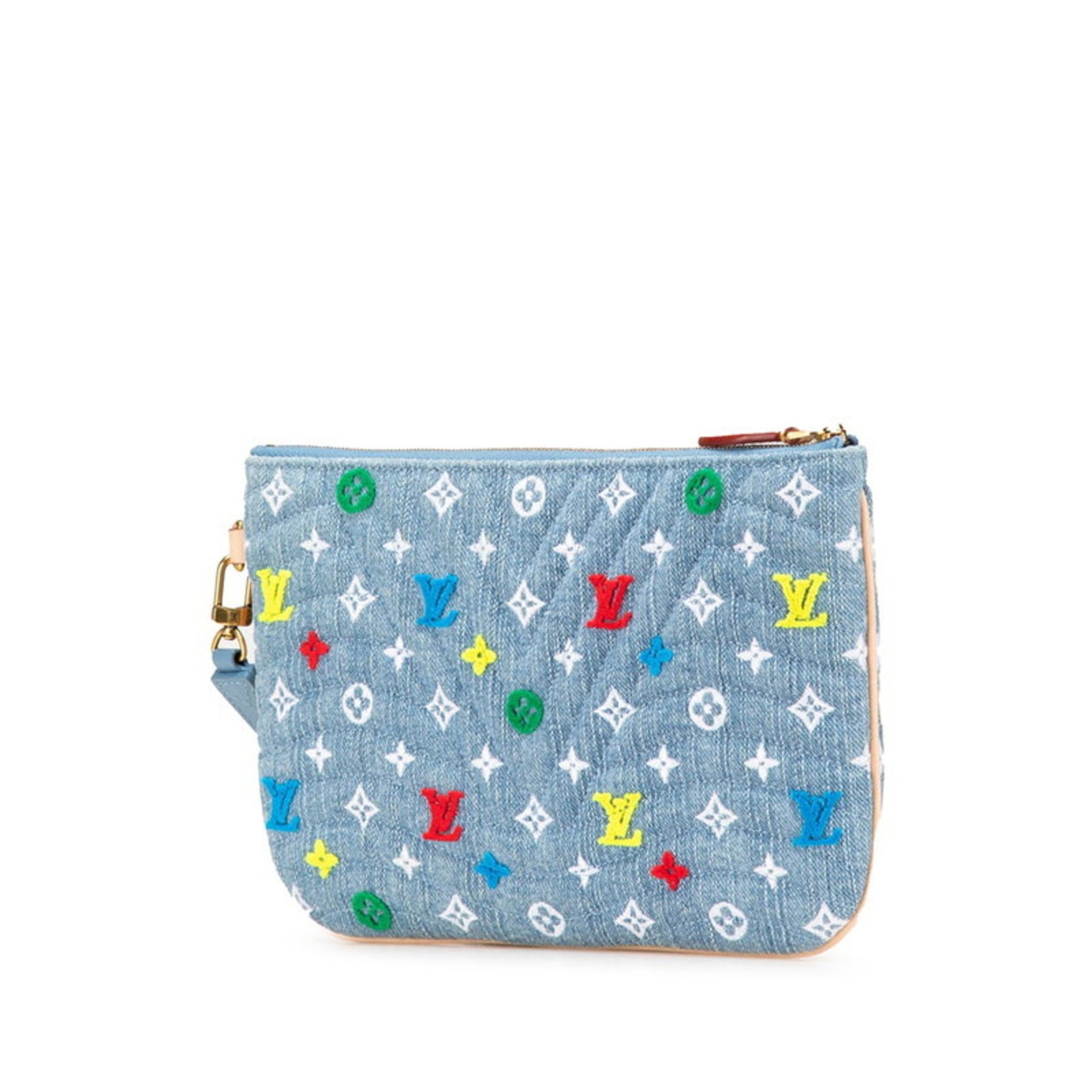 Louis Vuitton Monogram New Wave Pochette Zip Shoulder Bag M67538 Blue Multicolor Denim Leather Women\'s LOUIS VUITTON