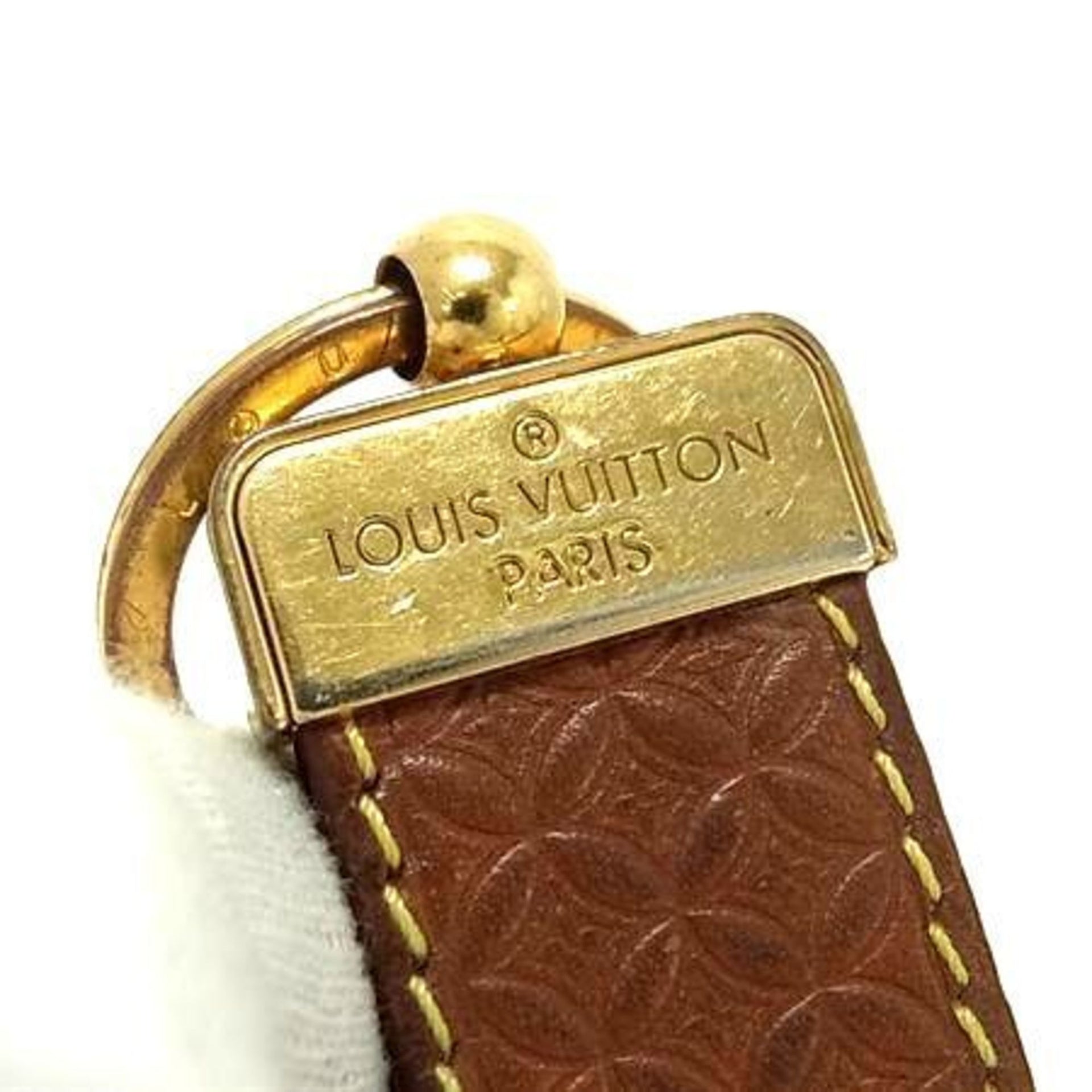 LOUIS VUITTON Monogram Porte-Clés Dragonne Keychain M66785 Brown Leather Flower Pattern for Men and Women