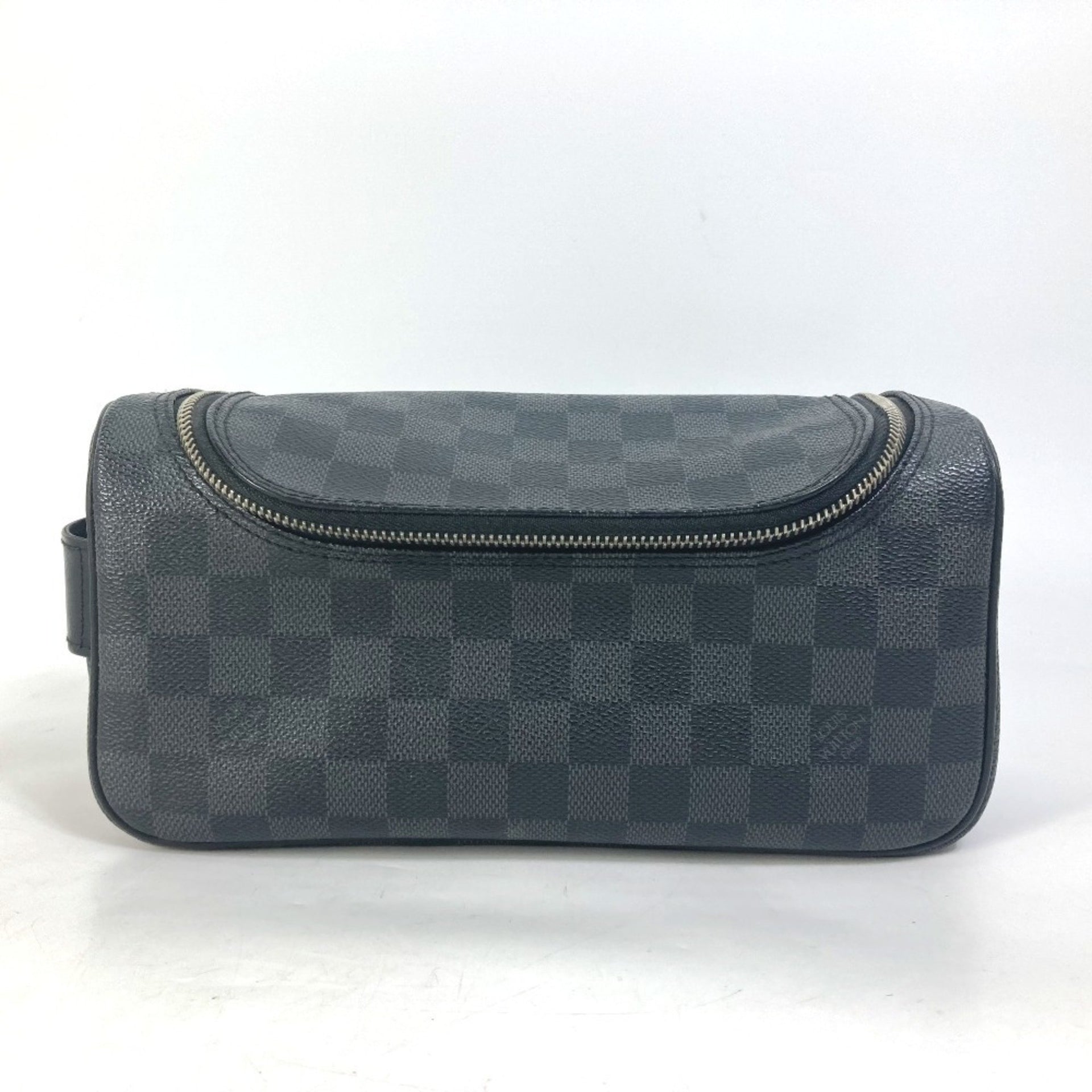 LOUIS VUITTON N47625 Damier Graphite Toiletry Pouch, Makeup Cosmetic Second Bag, Clutch Canvas, Men\'s, Black