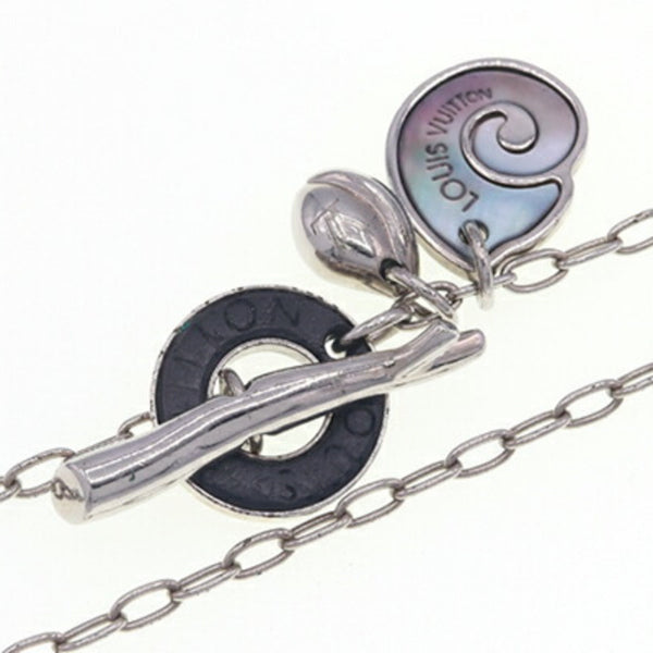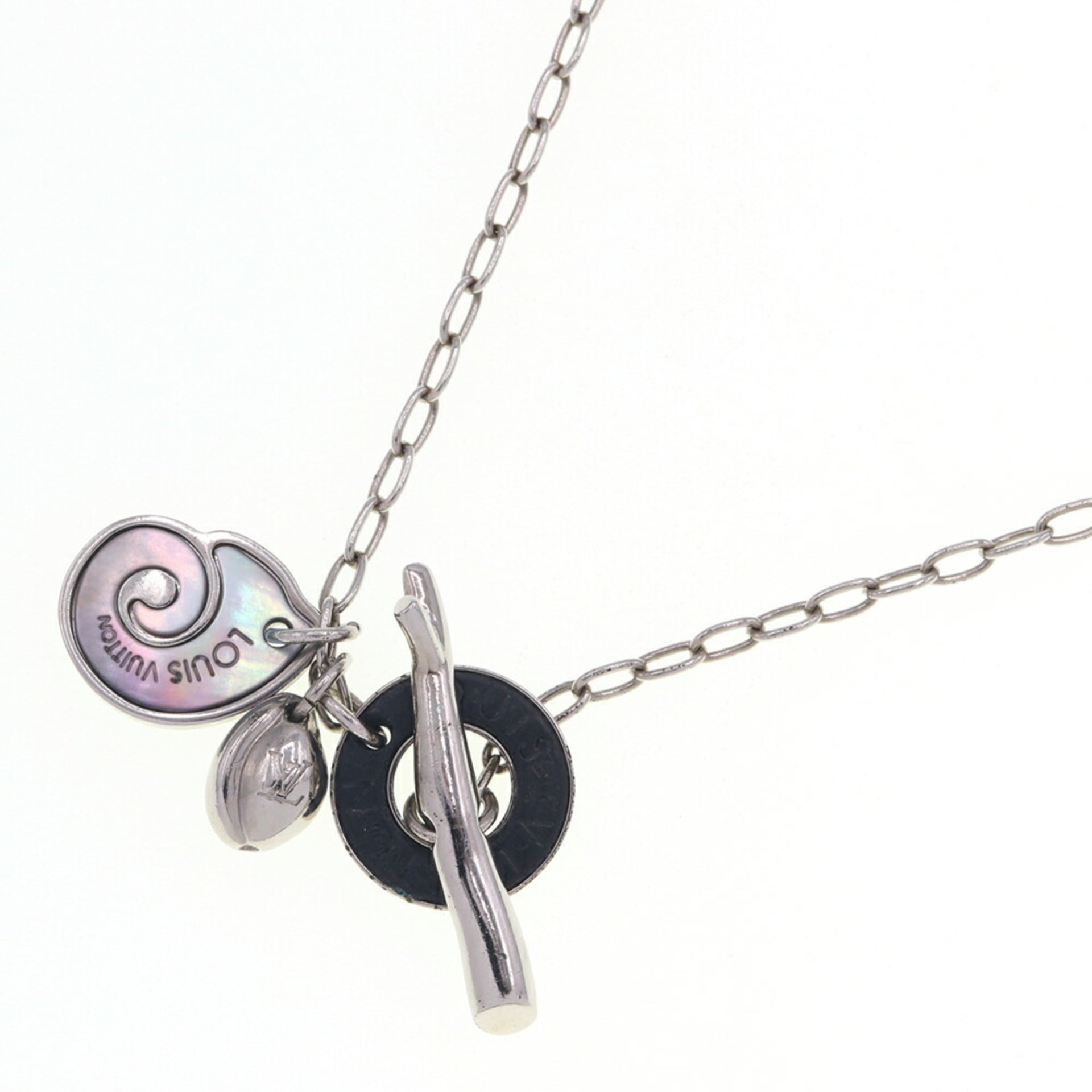 Louis Vuitton Necklace Sand Charms M62500 Silver Black Metal Shell Choker Men\'s LOUIS VUITTON