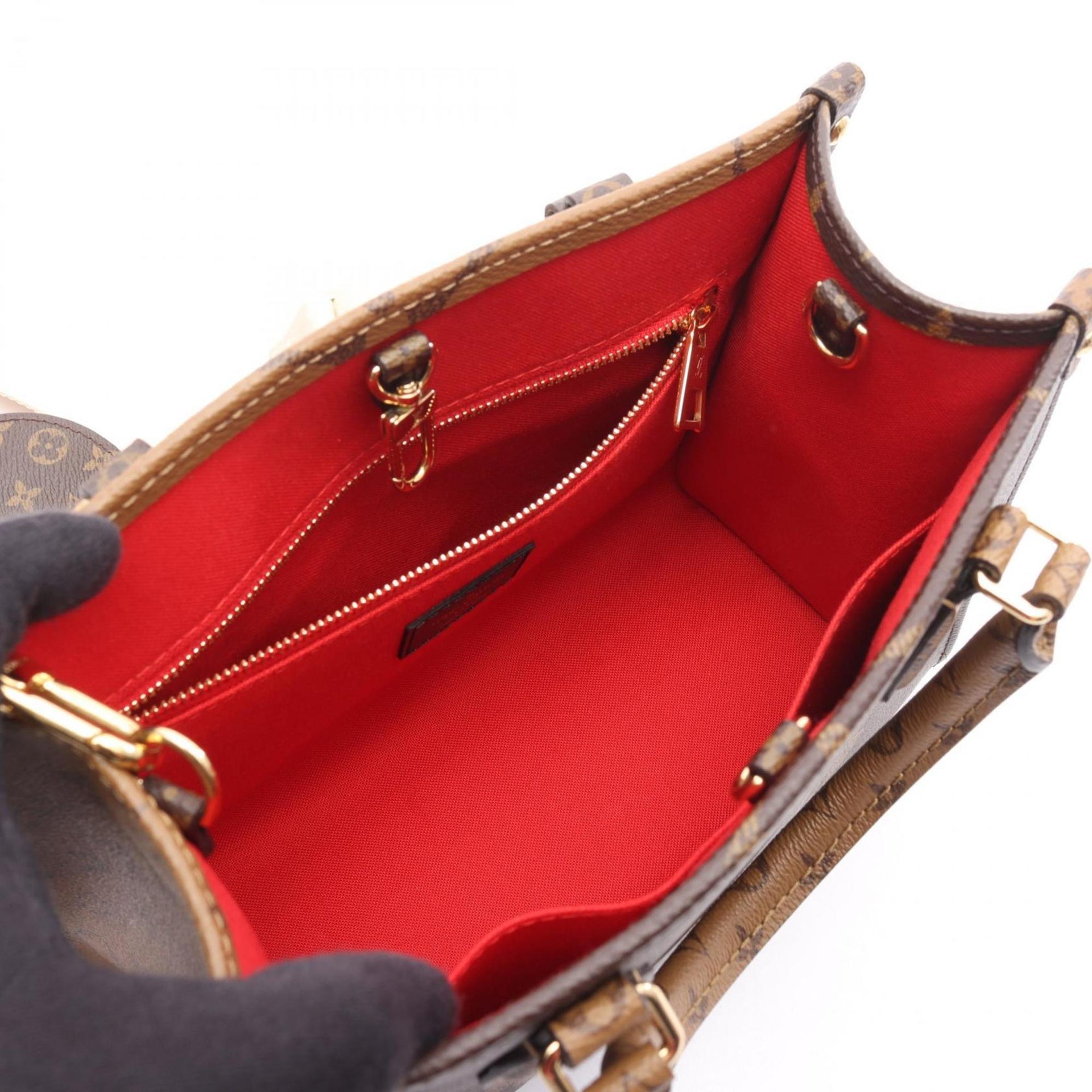 Louis Vuitton On the Go PM Handbag, Coated Canvas Monogram Giant Reverse, Women\'s, Brown and Beige, M46373
