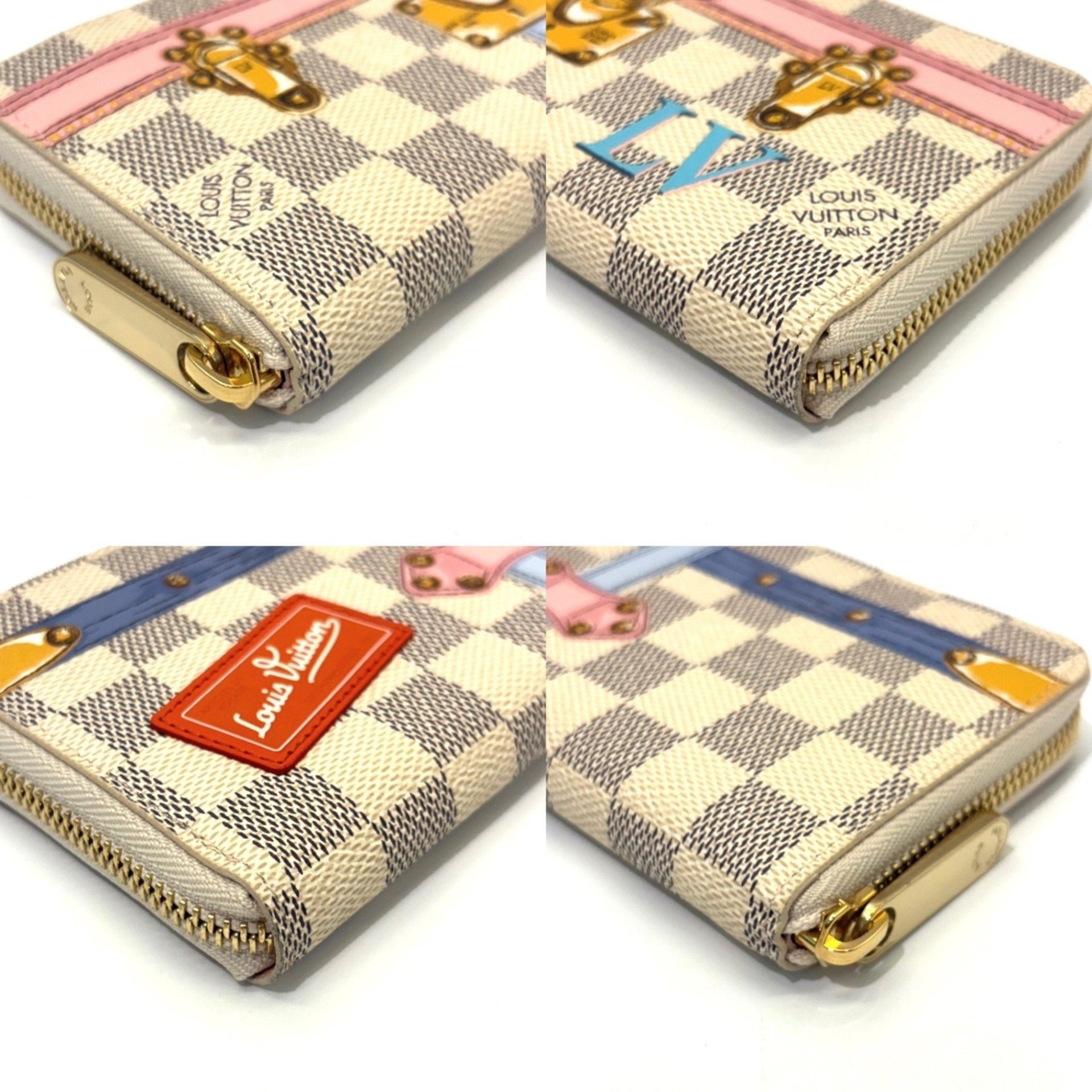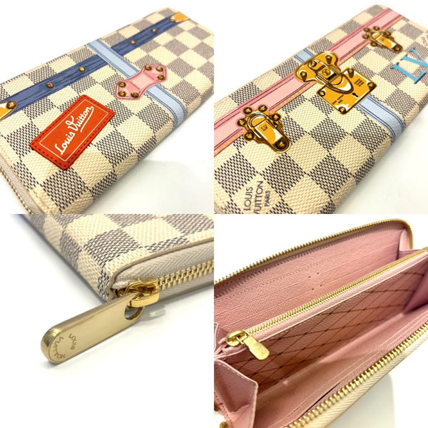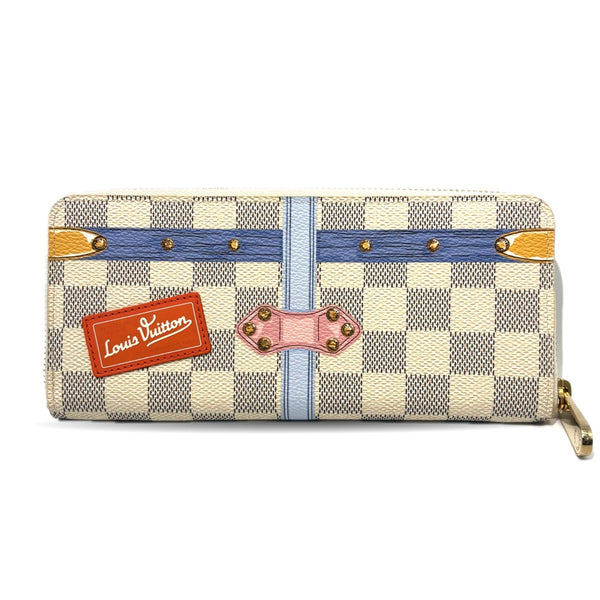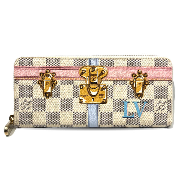 Louis Vuitton Portefeuille Clemence Summer Trunk Long Wallet Round Zipper Damier Azur White Leather N60109 LOUIS VUITTON