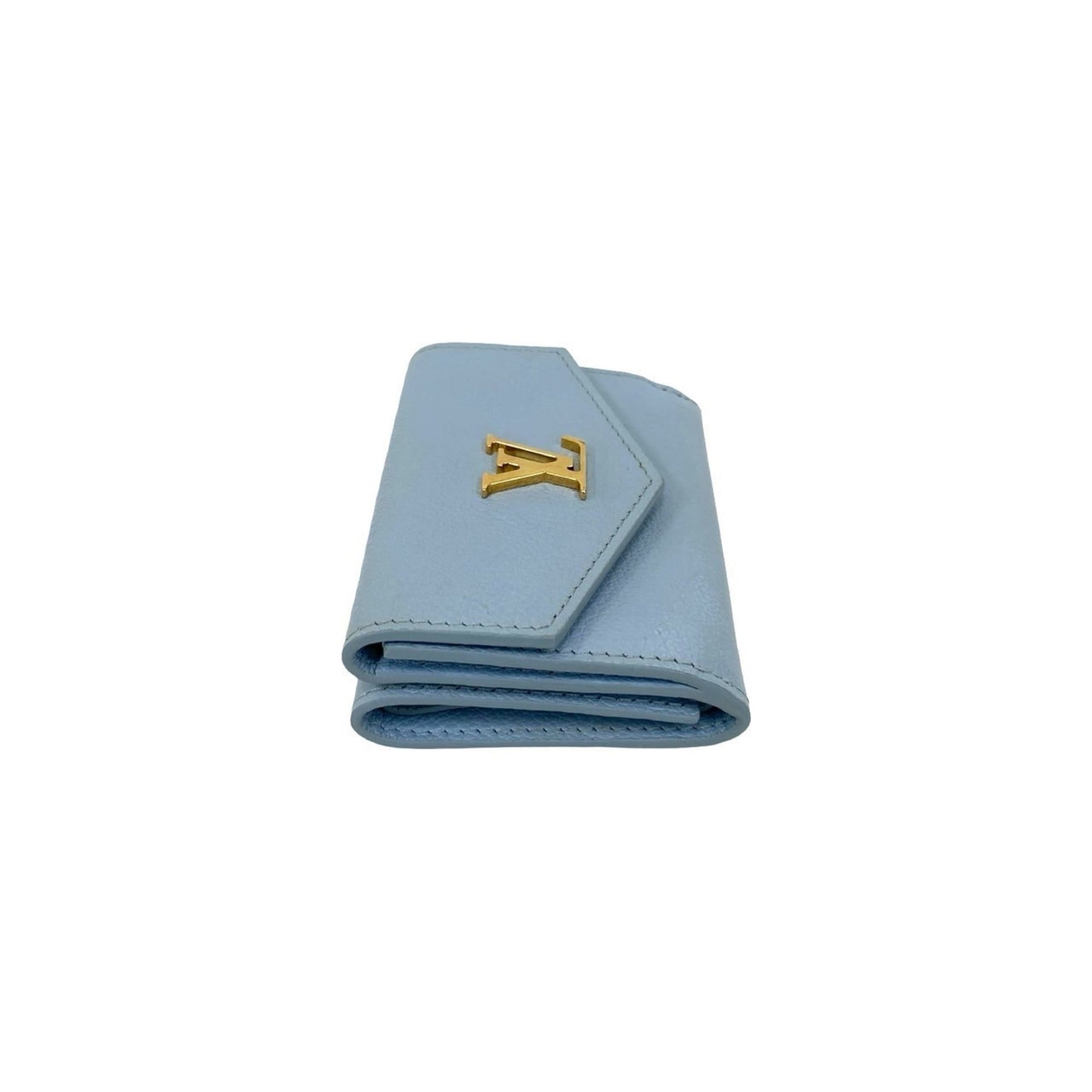 LOUIS VUITTON Portefeuille Lock Mini Leather Tri-fold Wallet, Light Blue, 37819