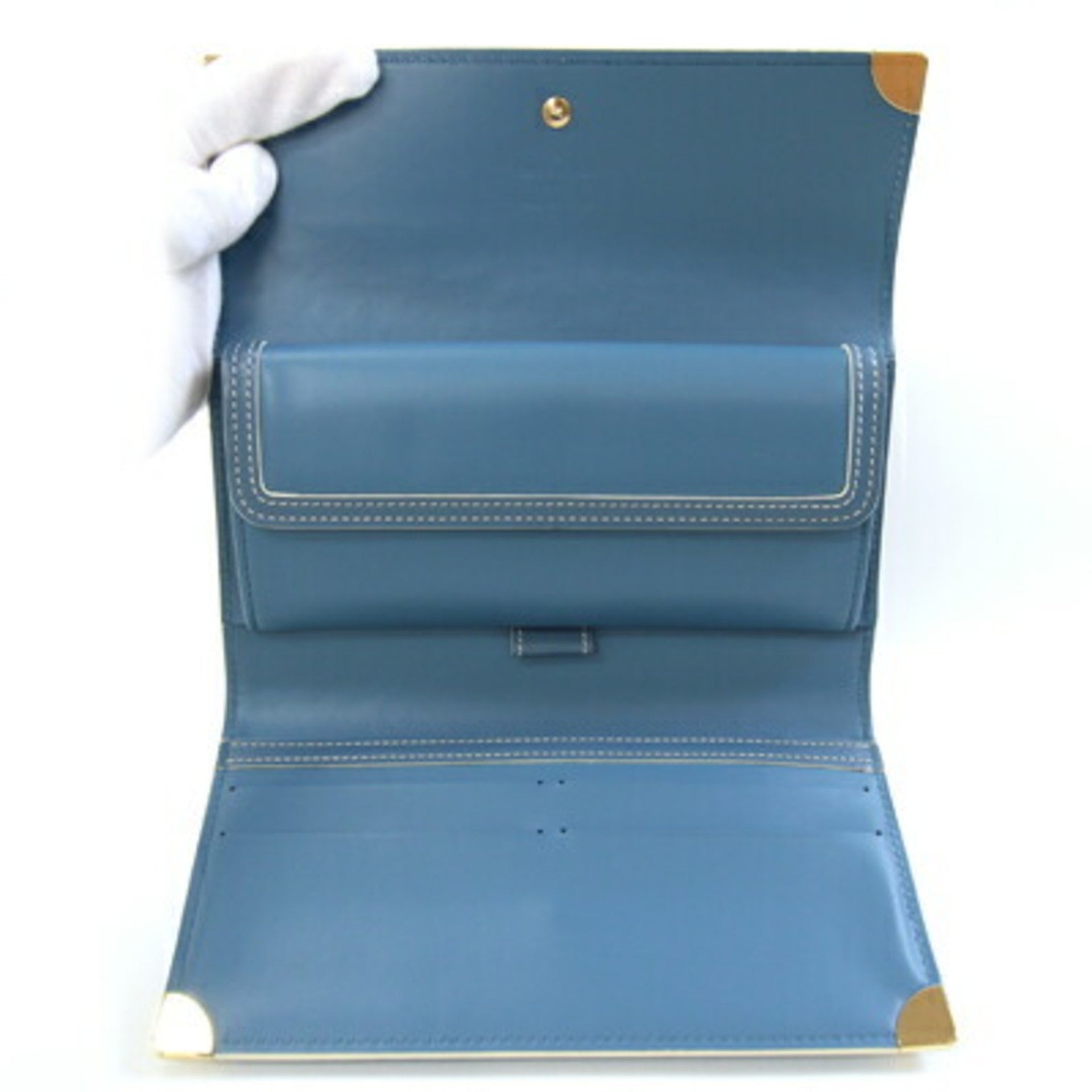 Louis Vuitton Suhali Porte Tresor International Tri-fold Wallet M91837 Blue Long for Women with Studs