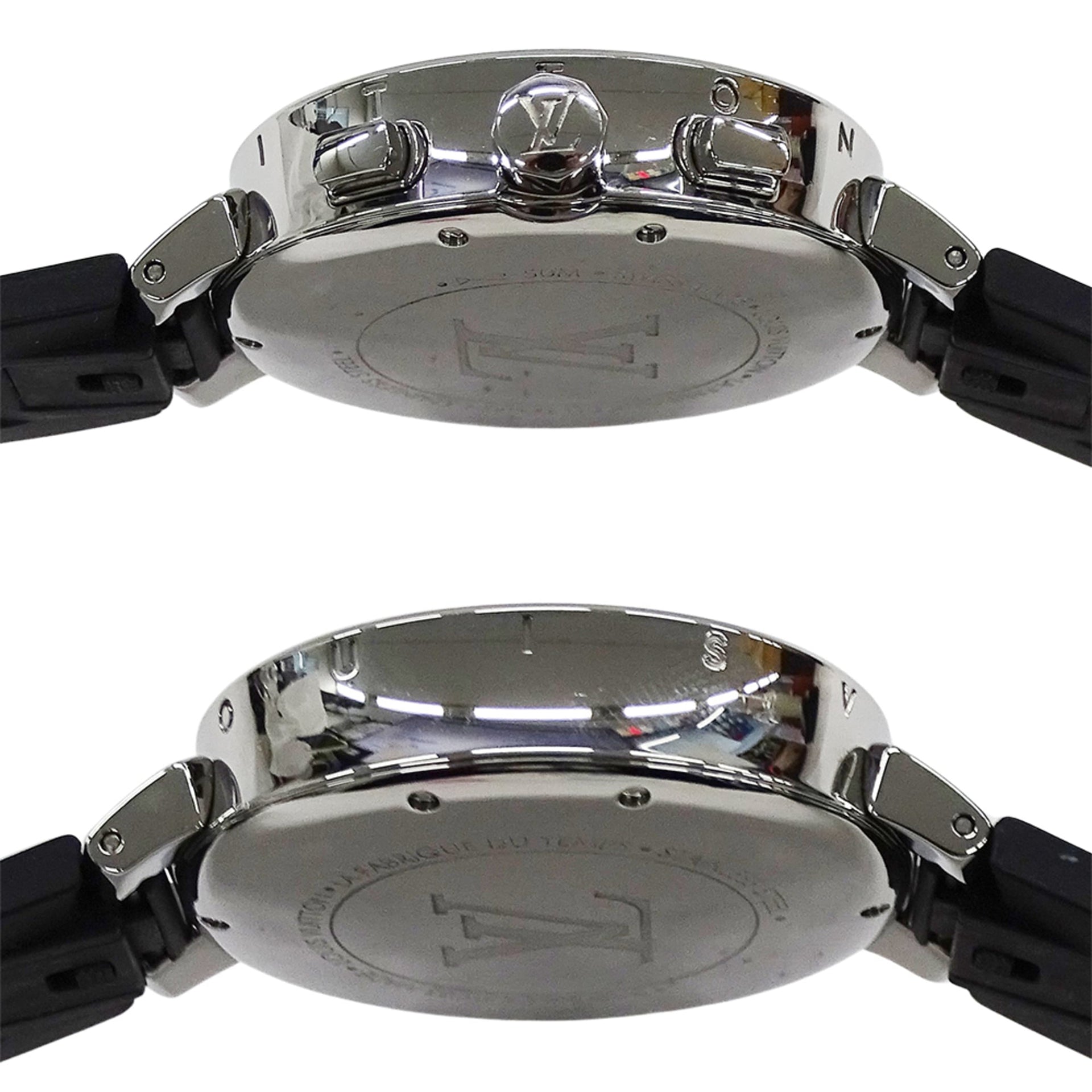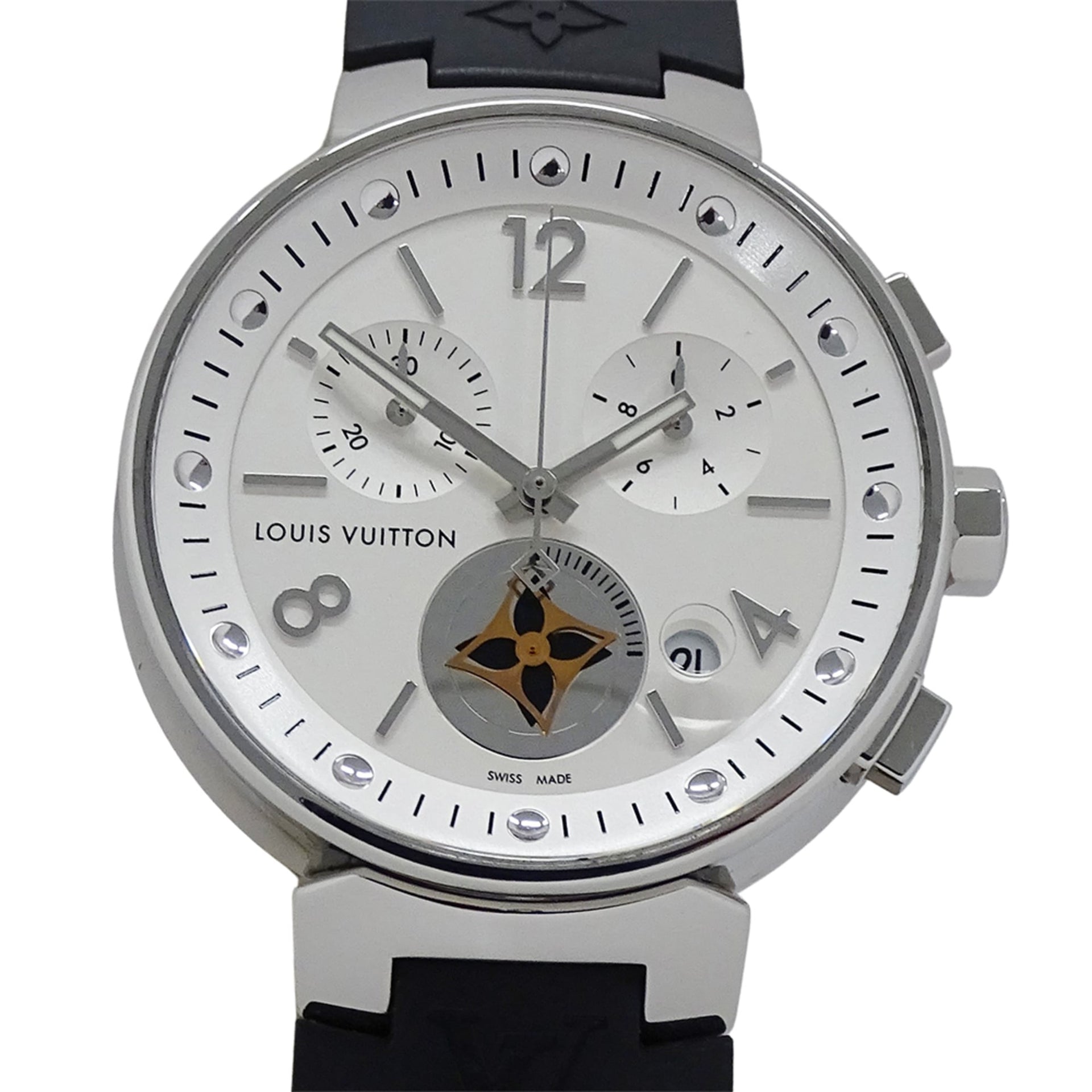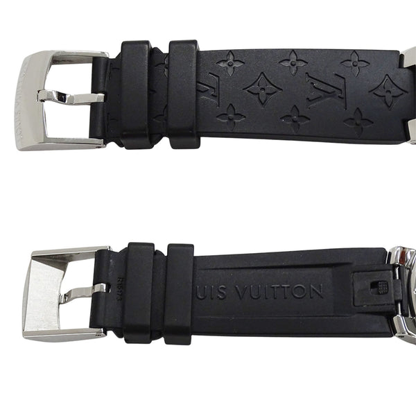 Louis Vuitton Tambour Moonstar Chronograph Quartz Watch for Boys, QZ Stainless Steel, Rubber, Silver, Polished, Q8G00