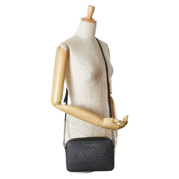 Michael Kors Signature Crossbody Chain Shoulder Bag 35F8STTC3B Black and Gray Leather Women\'s