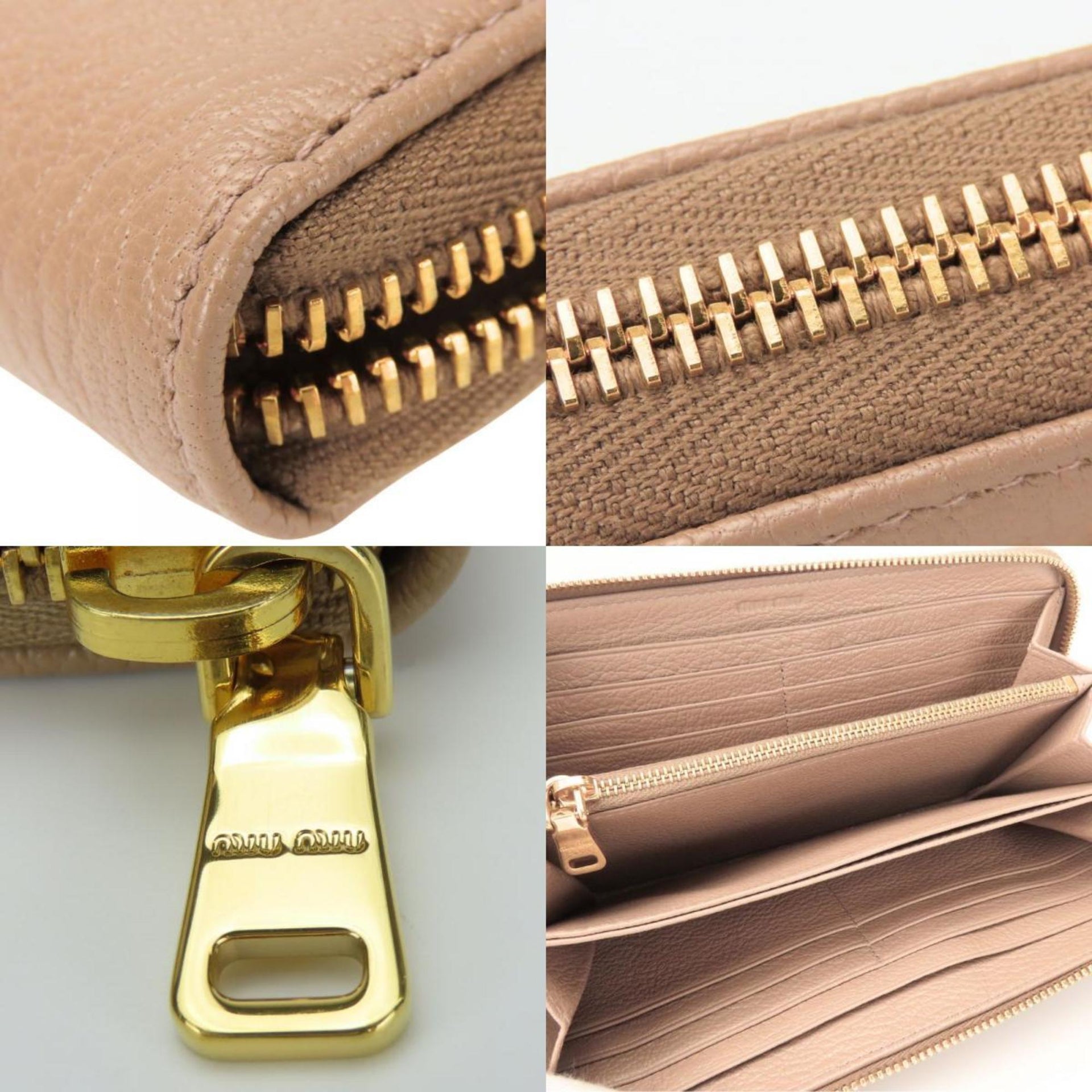 Miu Miu Miu Long Wallet Round 5M0506 Leather CAMMEO Pink Beige Dull Color Women\'s MIUMIU