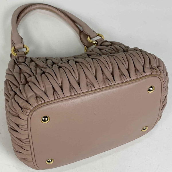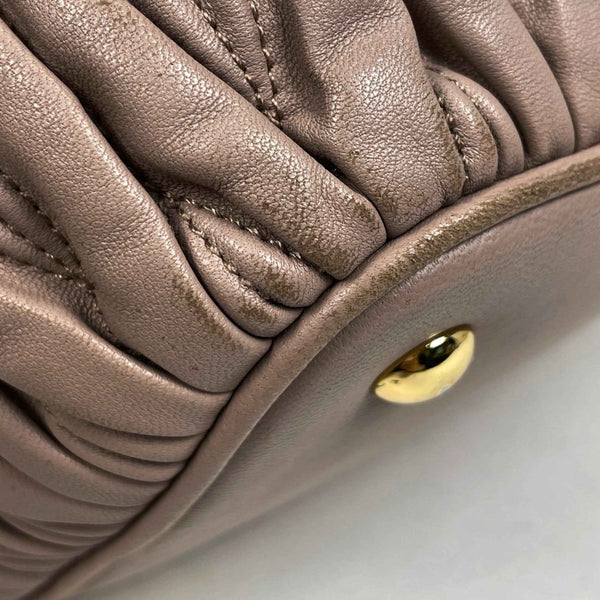Miu Miu Miu Matelasse Handbag, 2-Way Shoulder Bag, Gathered Leather Pink Beige, 5BE886, Women\'s