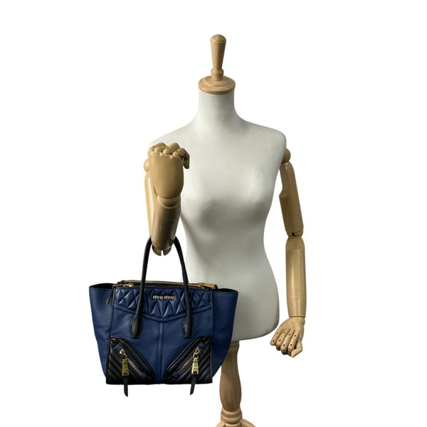 Miu Miu Miu Tote Bag, Biker Style, Nappa Leather, Gold Hardware, Women\'s, Genuine A1
