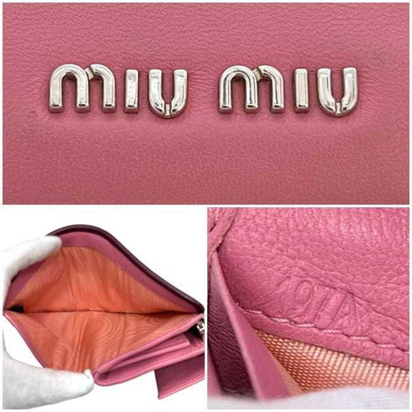 Miu Miu Miu Tri-fold Bag ec-24293 Pink Bordeaux Matelasse 5ML225 L-Shaped Leather 197A Hardware Men\'s Women\'s Two-Tone Black