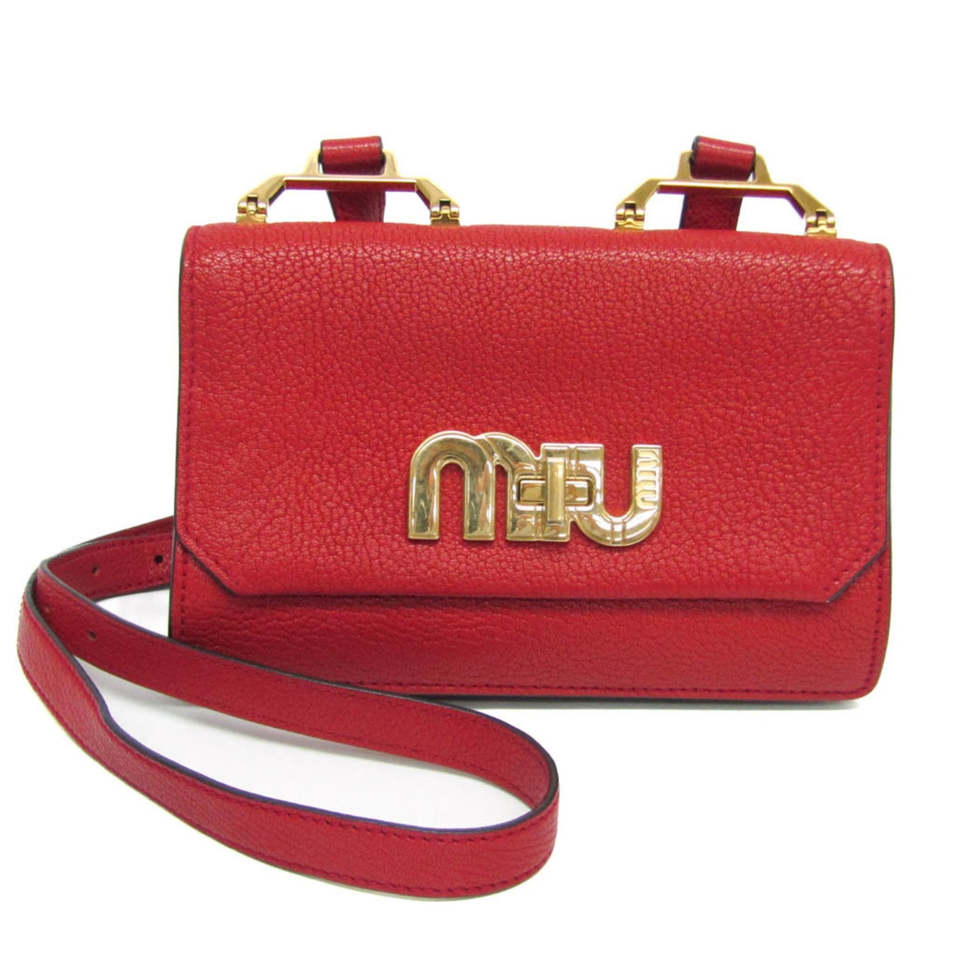 Miu Miu Women\'s Leather,Suede Shoulder Bag Red Color