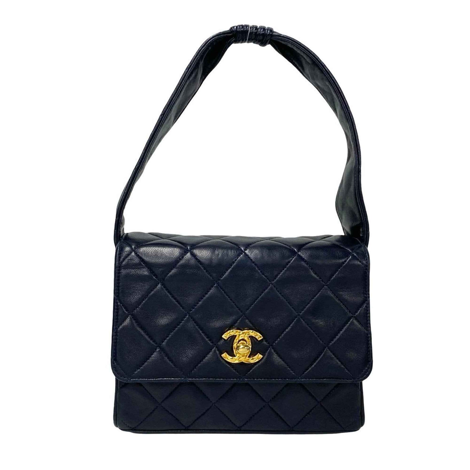 No. 2 CHANEL Matelasse Coco Mark Lambskin Leather Turnlock Handbag, Navy, 21564