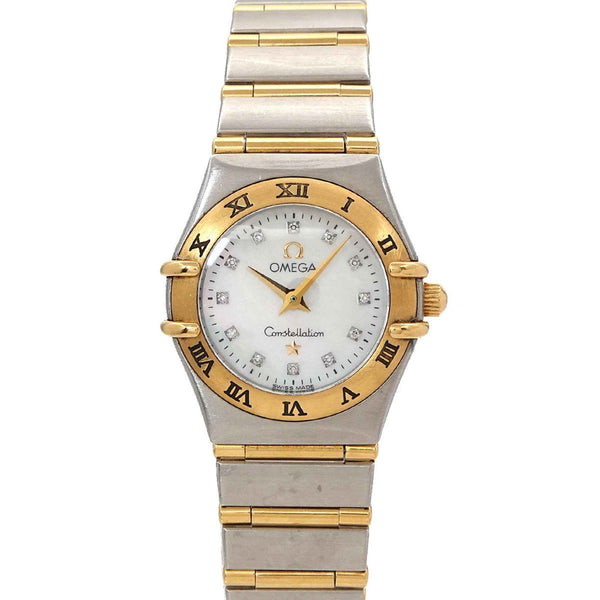 OMEGA Constellation Mini Two-Tone 1262 75 Women\'s Watch with 12 Diamonds, White Shell, and Yellow Gold Quartz Movement