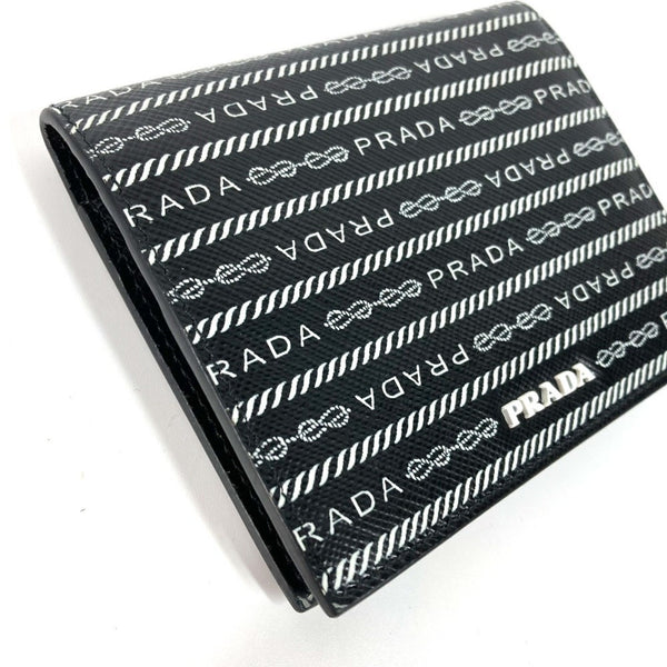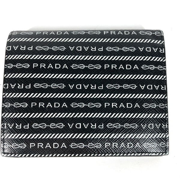 PRADA 1MV204 All-Over Logo Compact Wallet, Bi-Fold Leather, Women\'s, Black