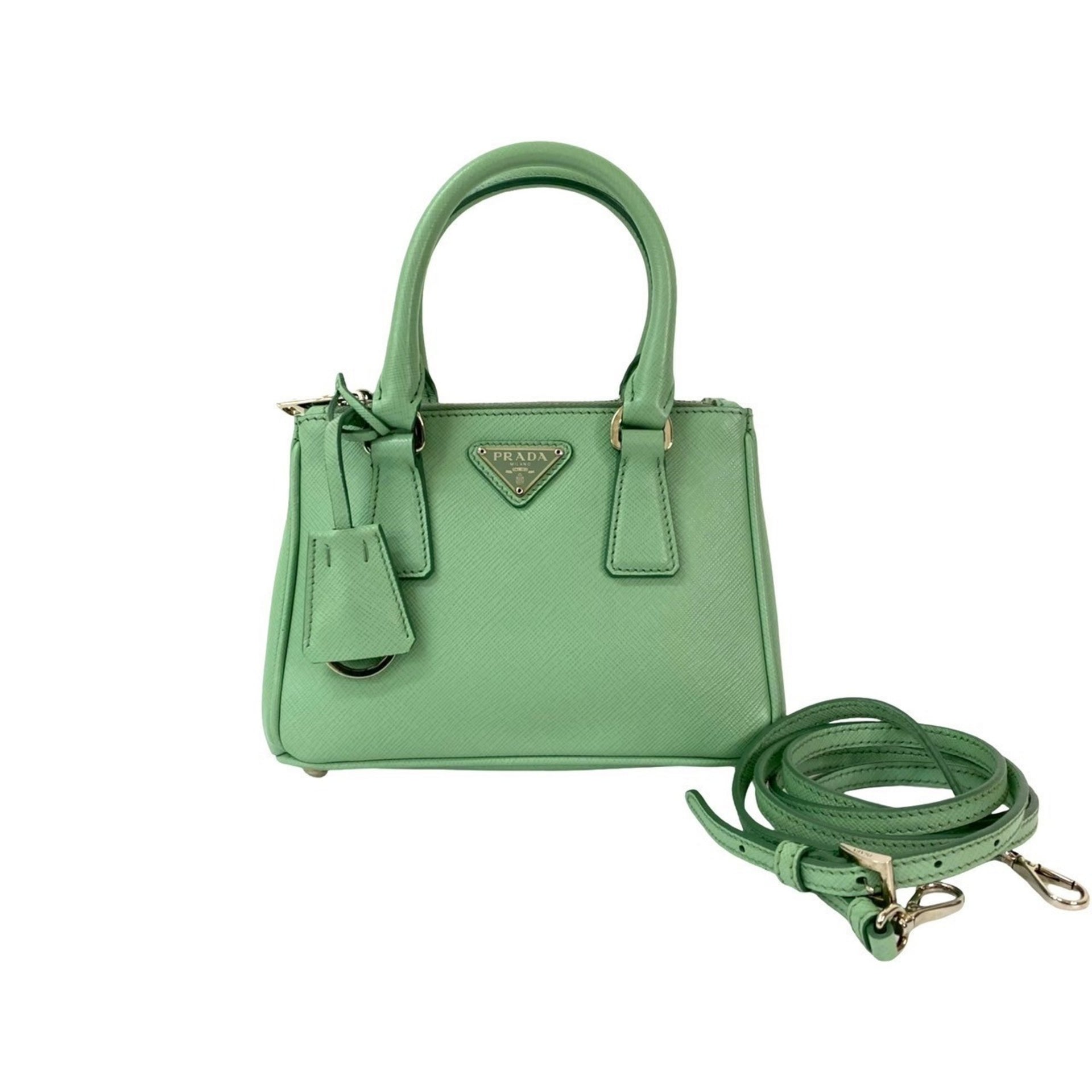 PRADA Galleria Micro Triangle Logo Hardware Saffiano Leather 2-Way Handbag/Shoulder Bag Light Green 95827