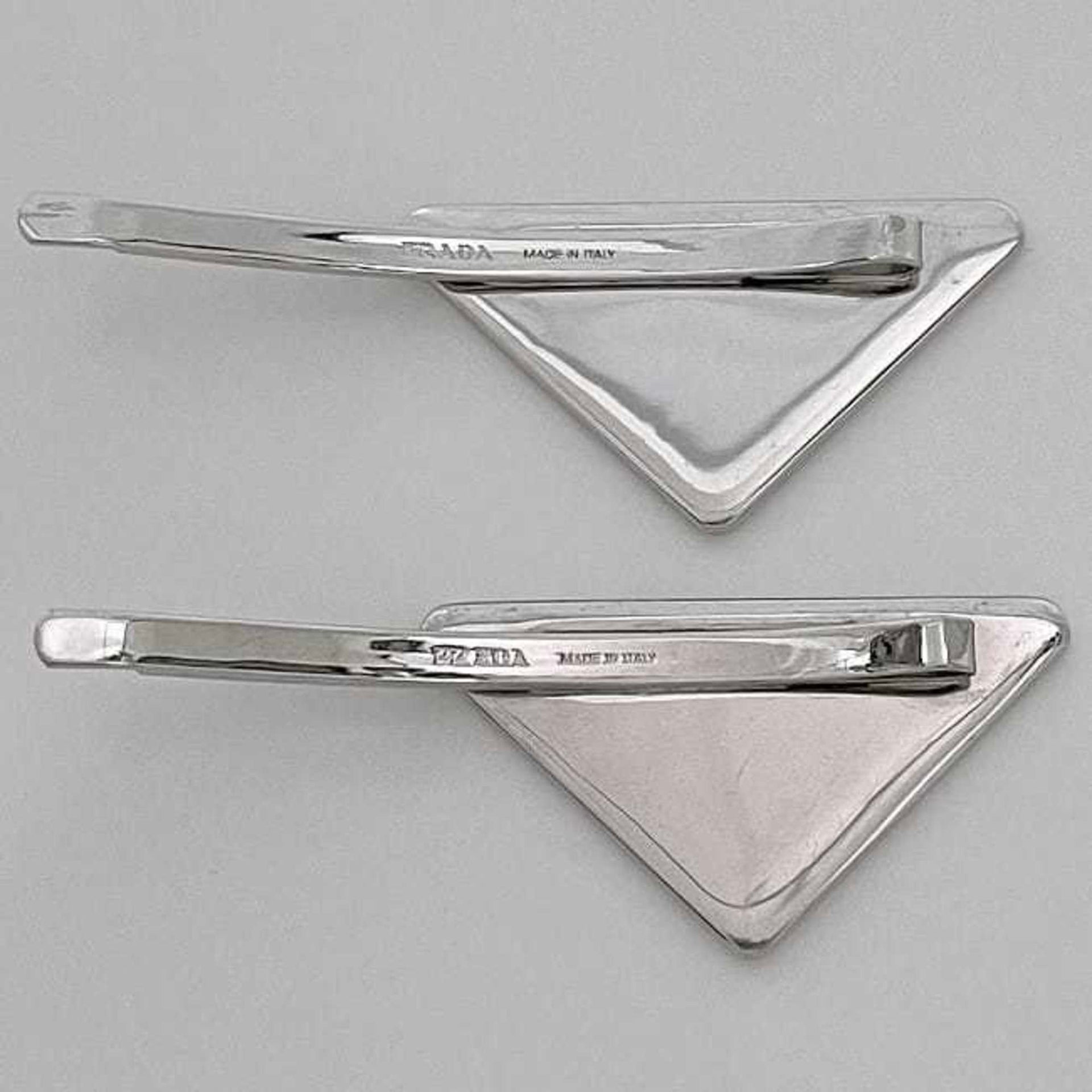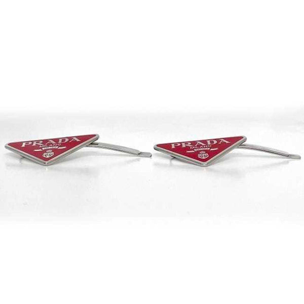 Prada Hairpin f-23295 Red Silver 1IF051 Unused New Metal PRADA Hair Clip Triangle For Women Fittings
