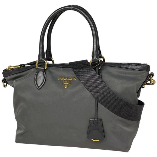 Prada logo tote bag, 2-way shoulder bag/handbag/tote nylon, gray, for women