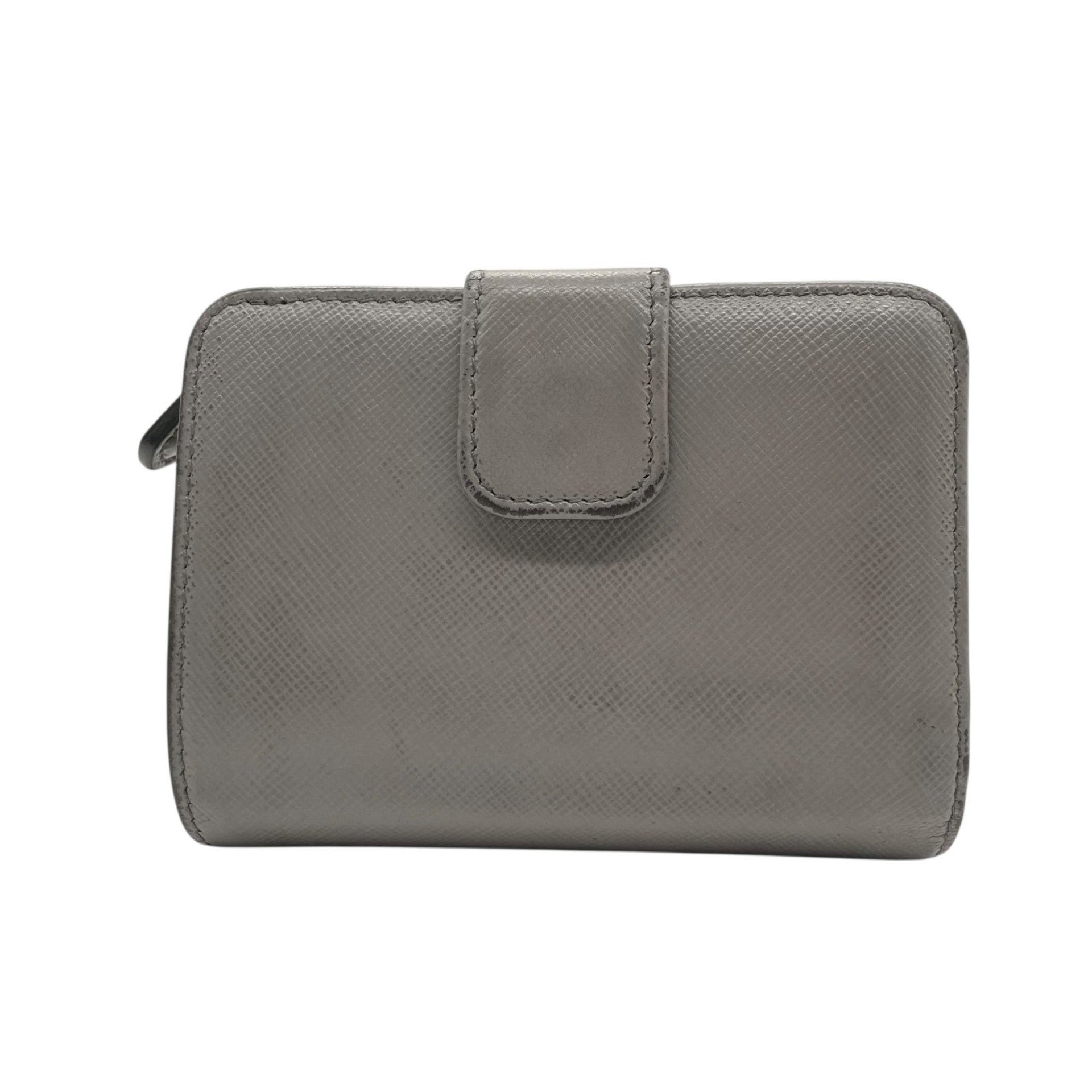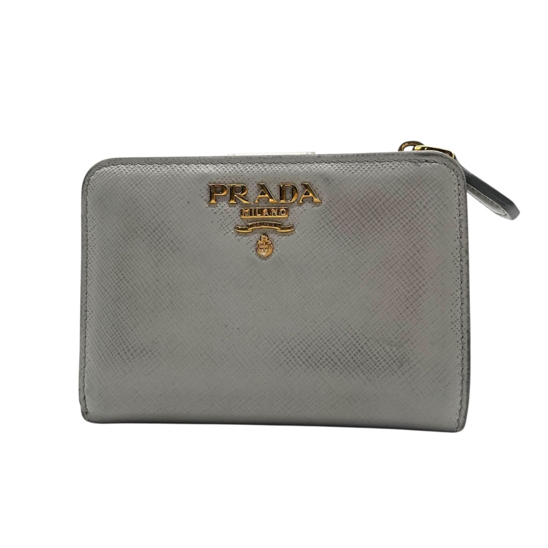 Prada PRADA Bi-fold Wallet, Saffiano Metal, Silver and Gold Hardware, Leather Compact Mini W4
