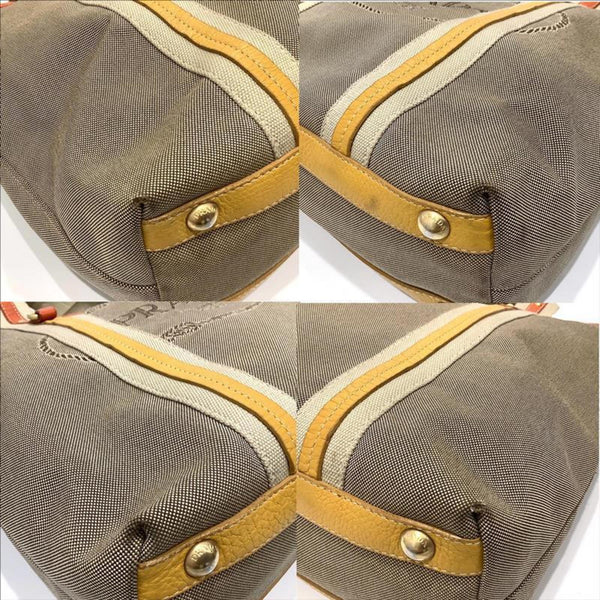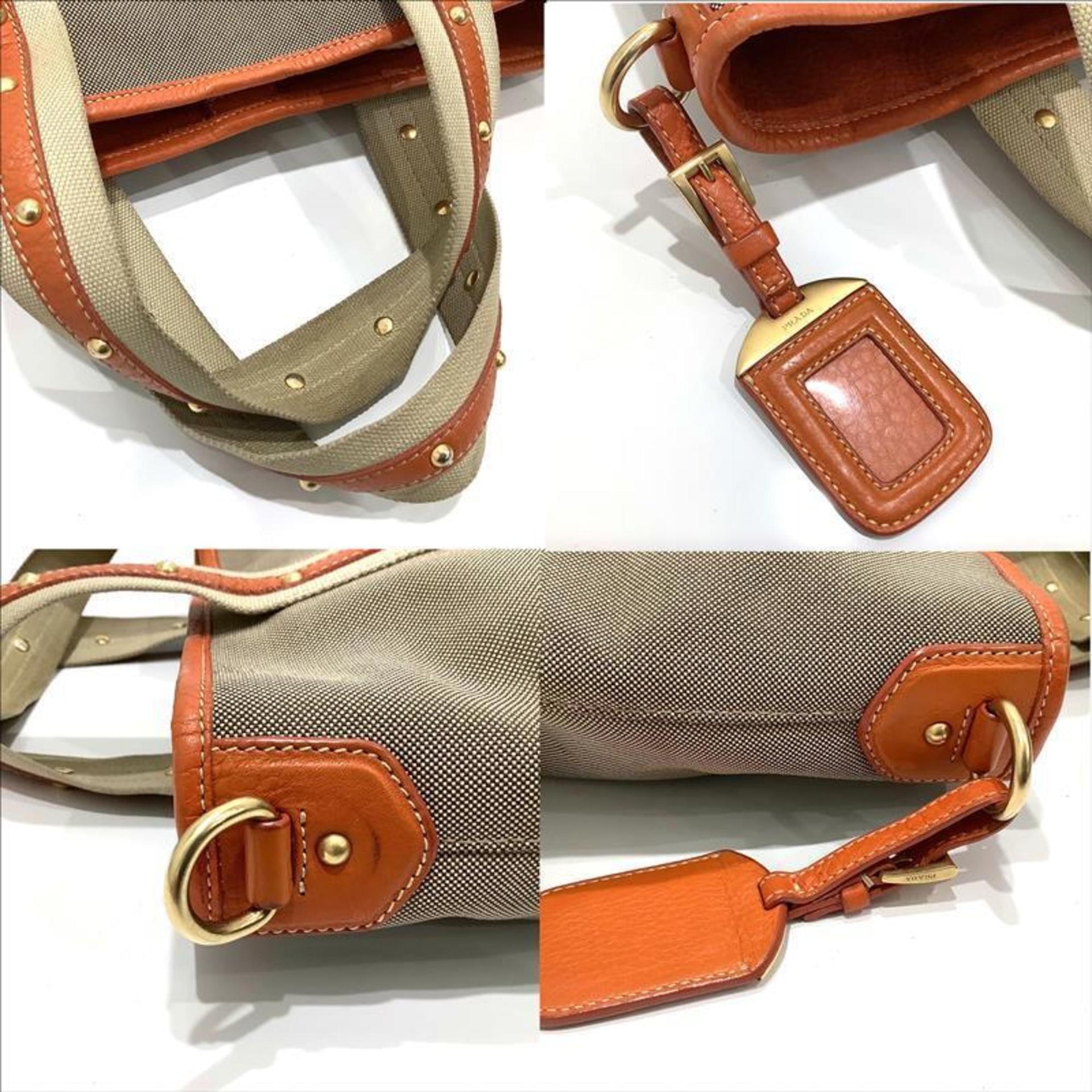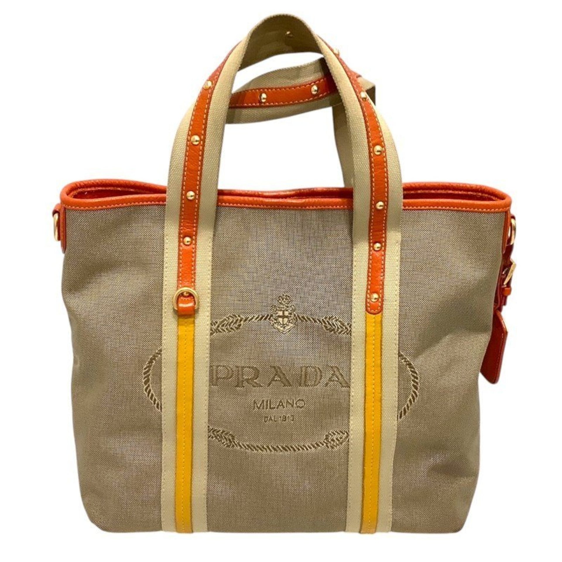 PRADA Prada Jacquard Stud Handbag, Beige, No Warranty, JA-24190