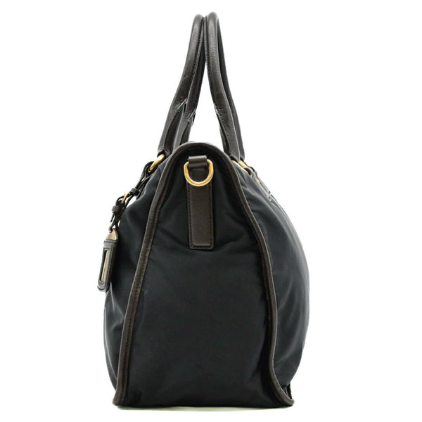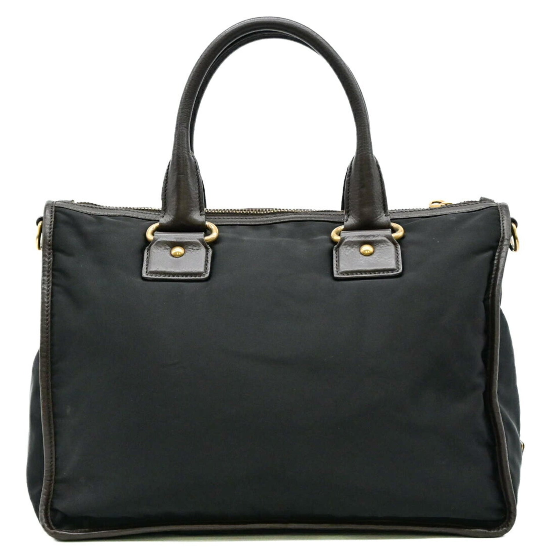 PRADA Prada Jacquard Triangle Plate Shoulder Handbag Tote Nylon Black Brown BL0748