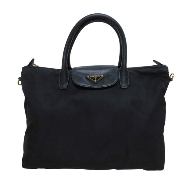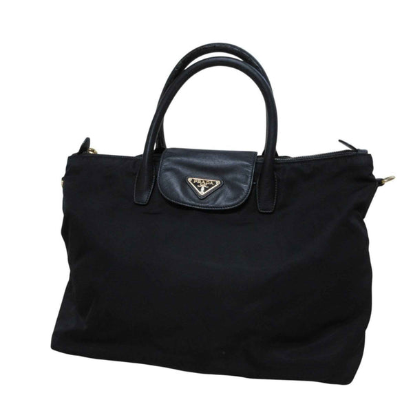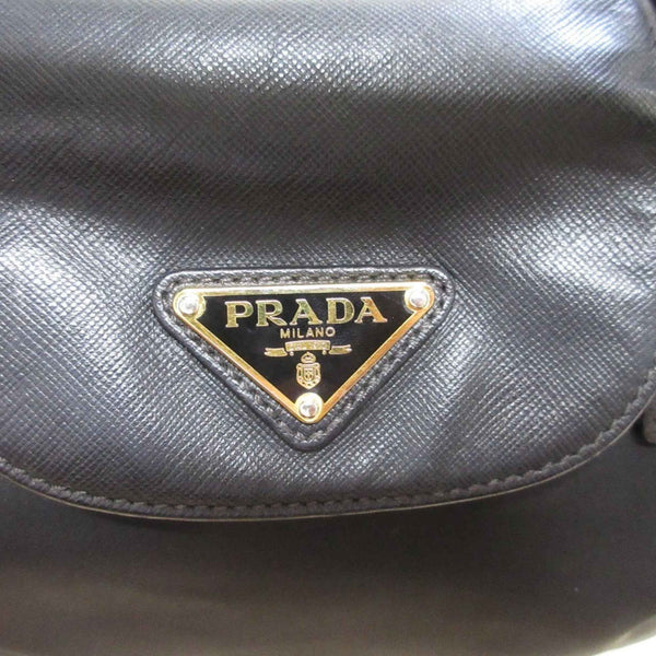 PRADA Prada Nylon and Leather Handbag 1BA106 Black Women\'s