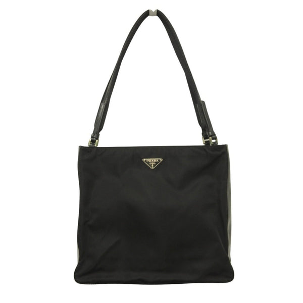 PRADA Prada nylon and leather tote handbag with triangle logo in black for men women