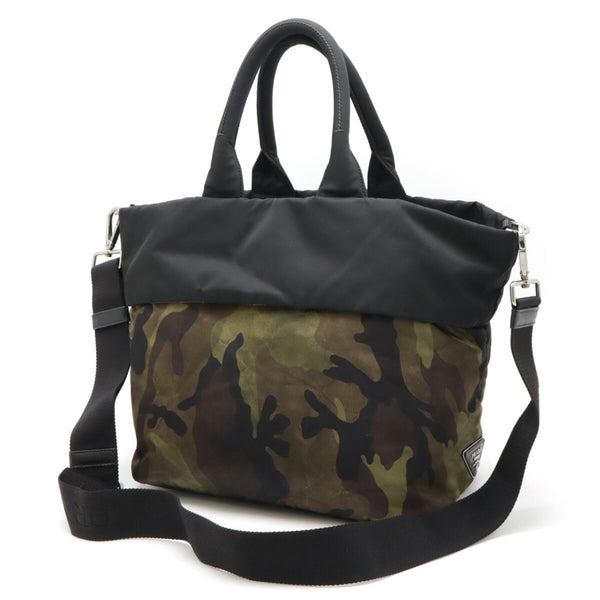 PRADA Prada reversible tote bag shoulder camouflage pattern nylon green multicolor NERO black BN1959