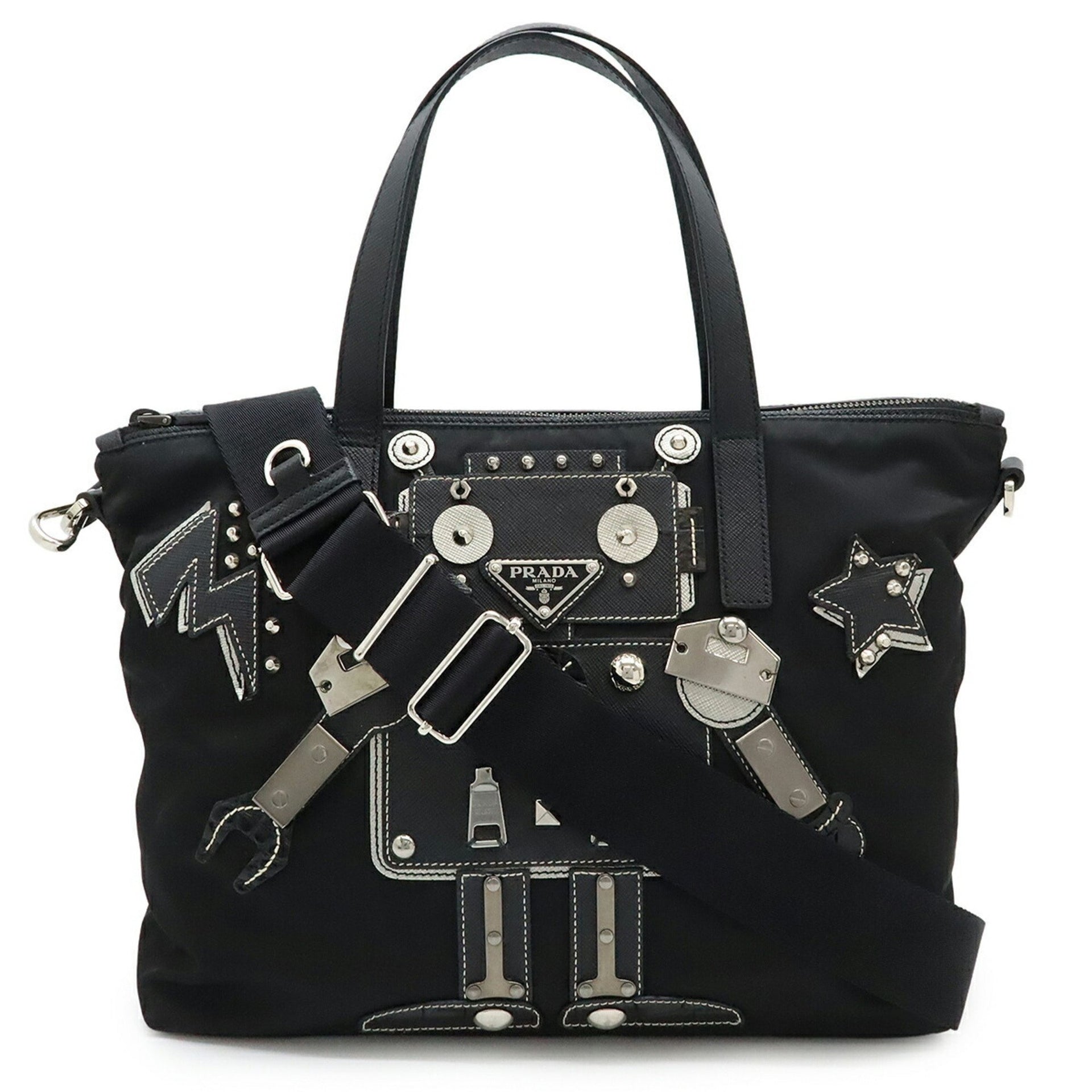 PRADA Prada Robot Triangle Handbag Shoulder Bag Nylon NERO Black 1BG061