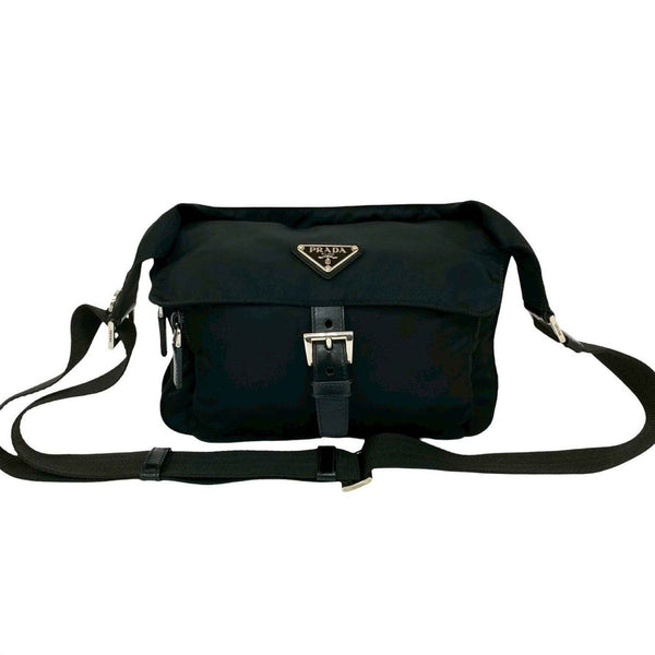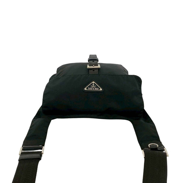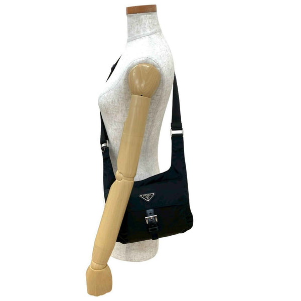 PRADA Prada triangle logo hardware Tessuto nylon and leather shoulder bag/pouch/sacoche in black 95736