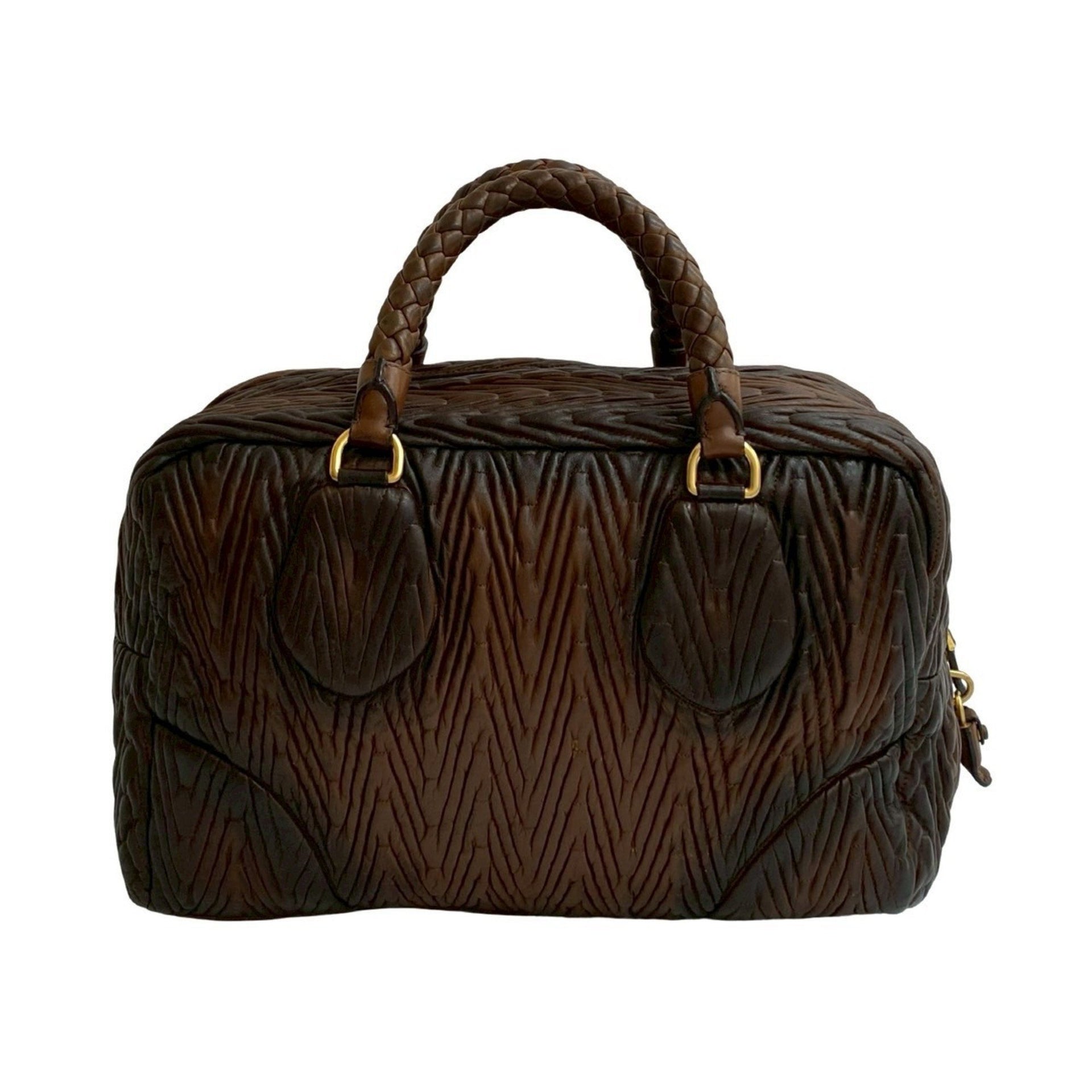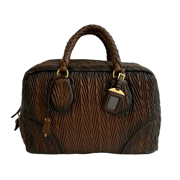 PRADA Prada Triangle Logo Plate with Metal Fittings, Quilted Leather, Genuine Leather Handbag, Boston Bag, Tote Brown, 24058