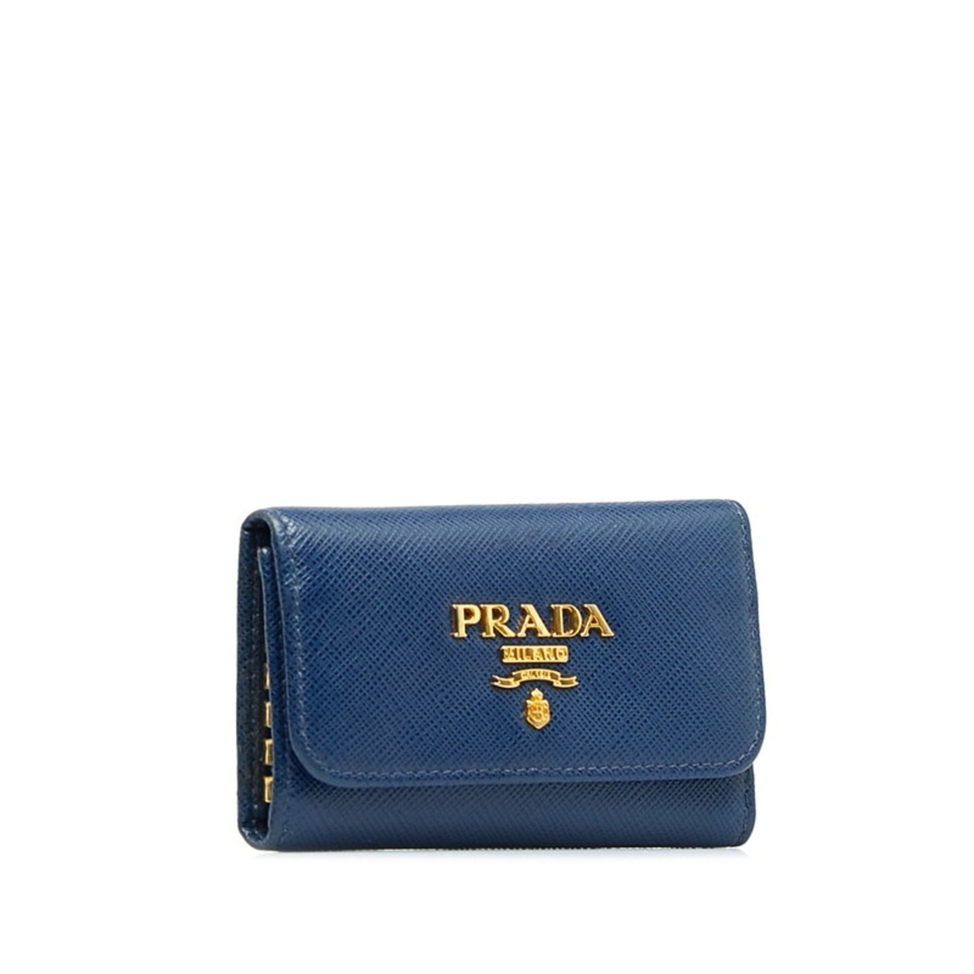 Prada Saffiano Key Case 1PG222 Blue Leather Women\'s PRADA