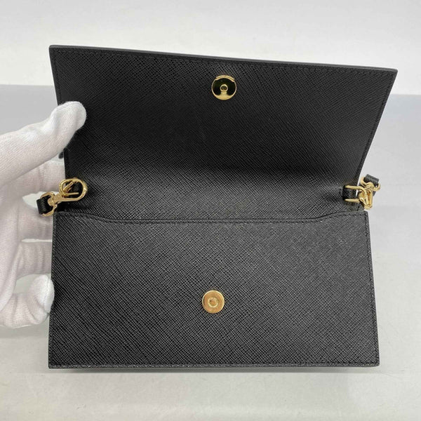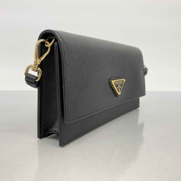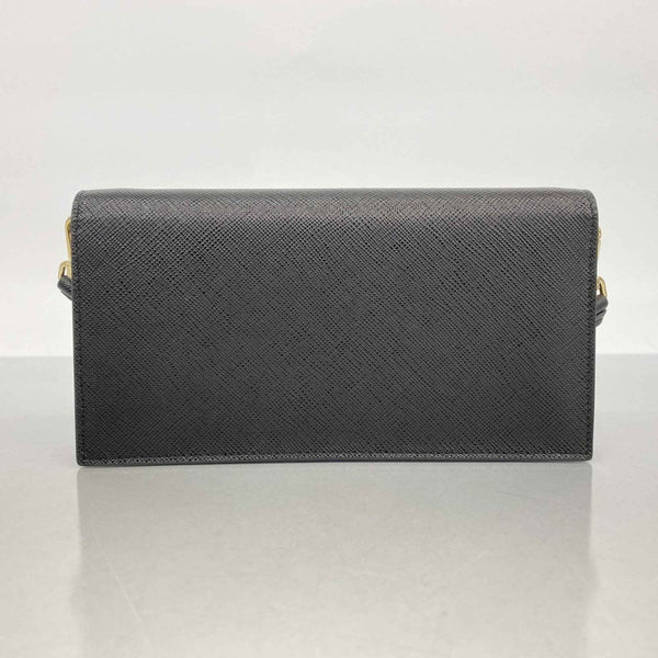 Prada Saffiano Leather Shoulder Wallet in Black for Women
